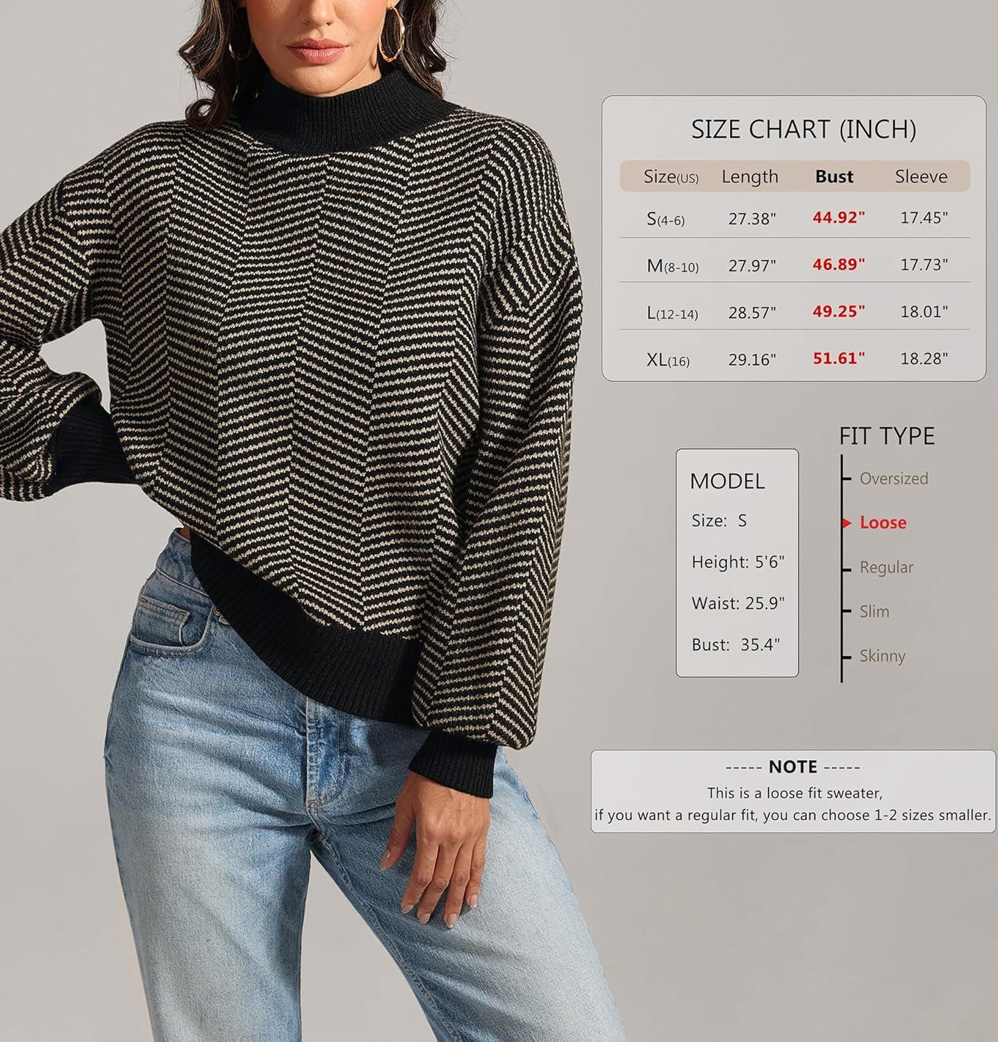 ATHMILE Womens Fashion Turtleneck Sweater Long Sleeve Plaid Ribbed Knit Loose Pullover Tops Trendy Office Outfits(Carbon)