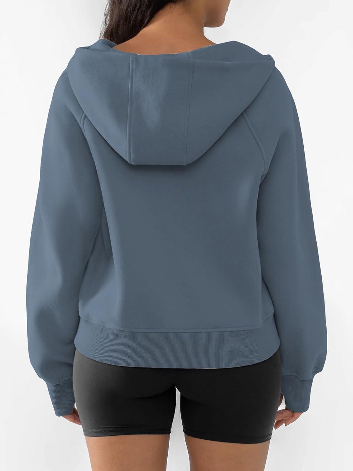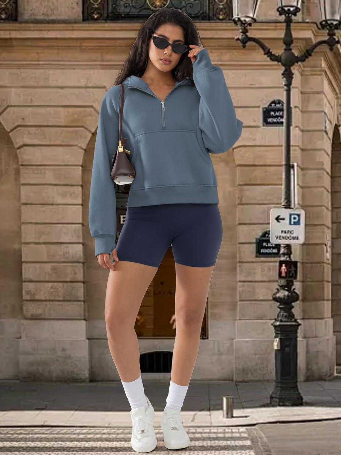 ATHMILE Womens Hoodies Long Sleeve Fleece Quarter Zip Pullover Workout Oversized Sweatshirt Fall Winter Crop Jacket Tops 2025(Greyblue)