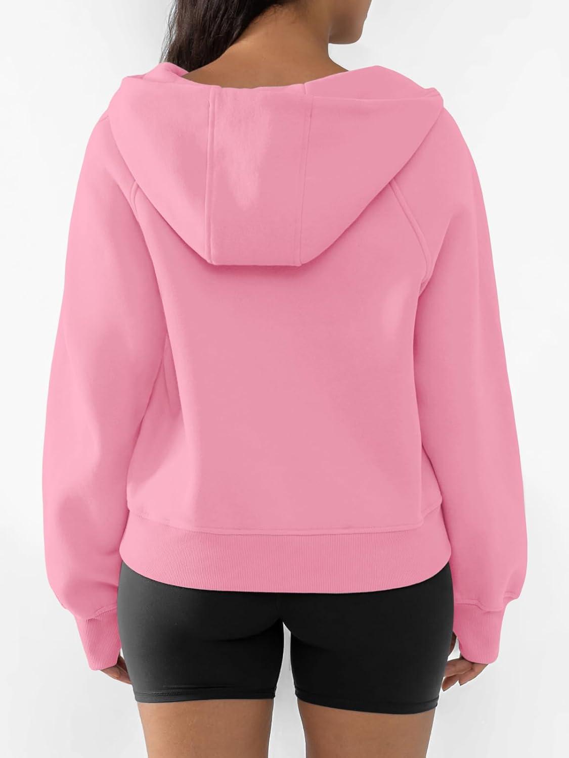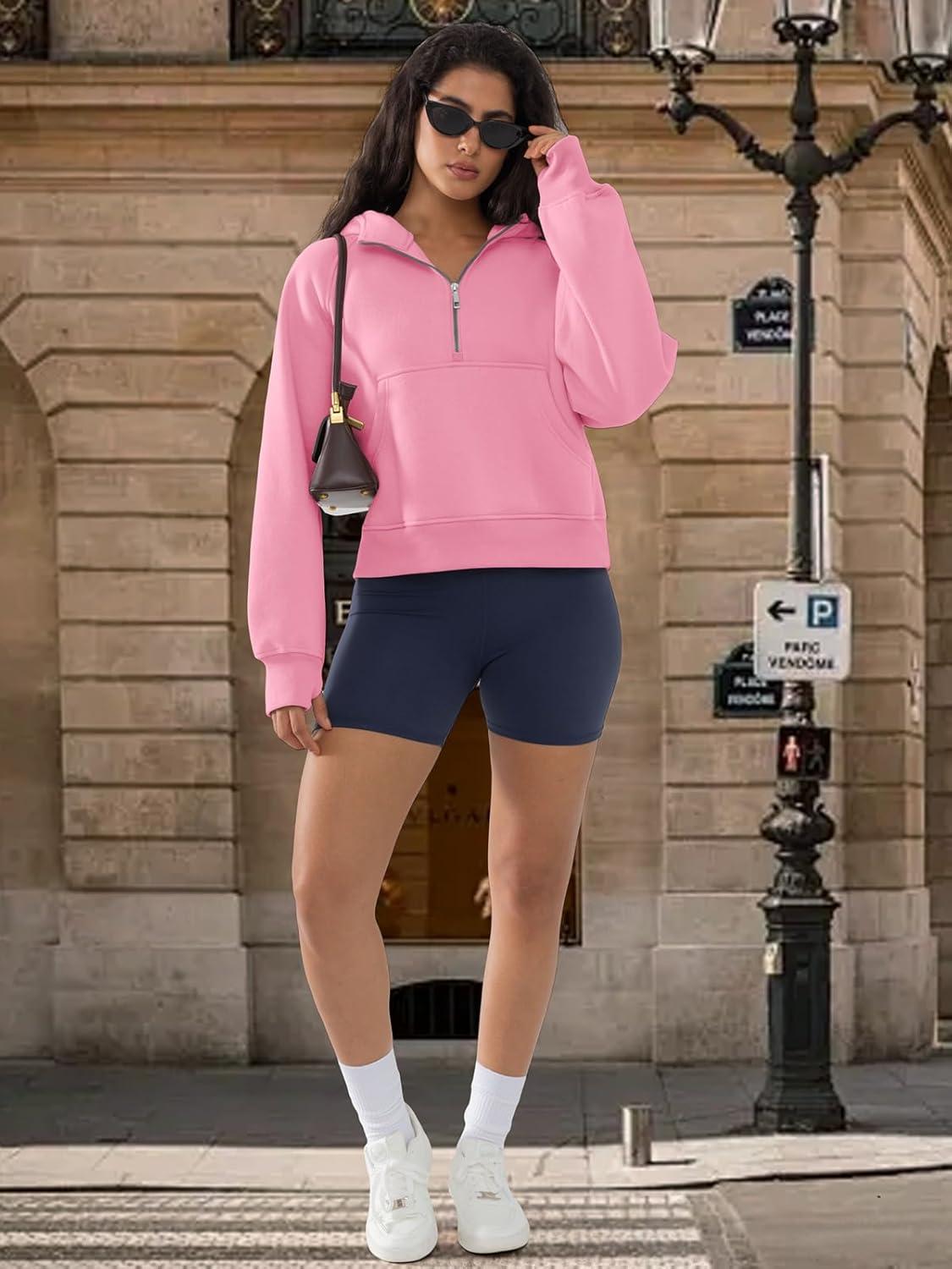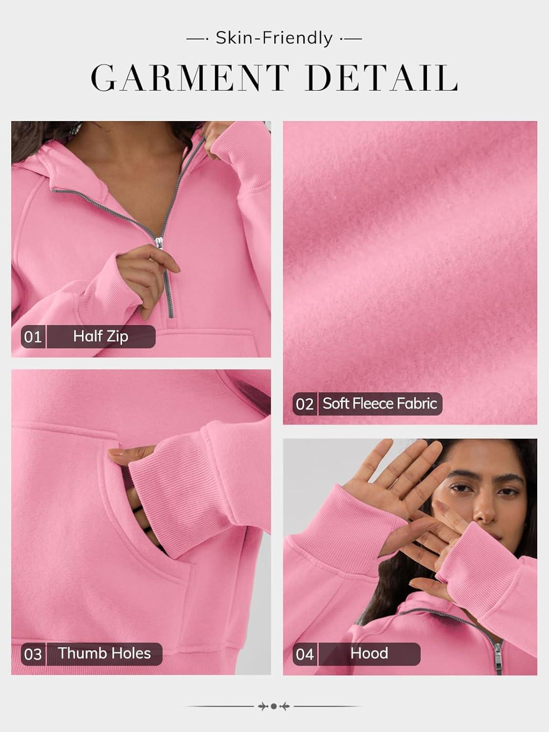 ATHMILE Womens Hoodies Long Sleeve Fleece Quarter Zip Pullover Workout Oversized Sweatshirt Fall Winter Crop Jacket Tops 2025(Pink)