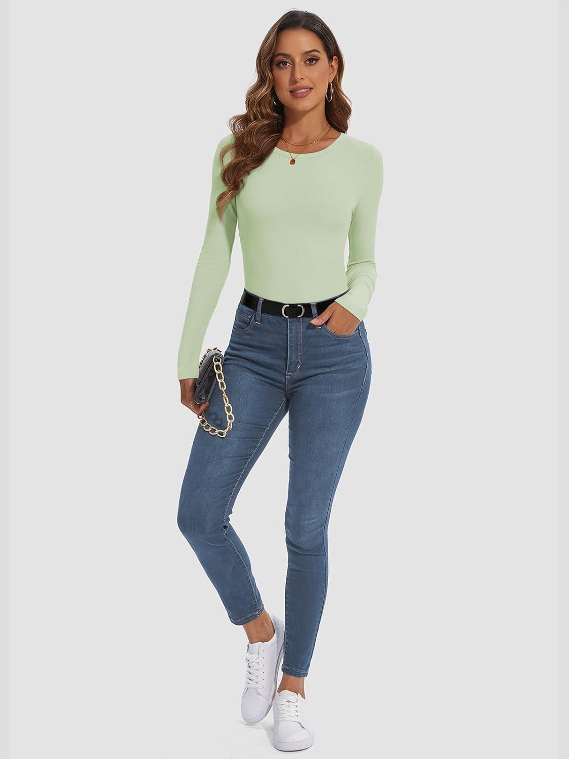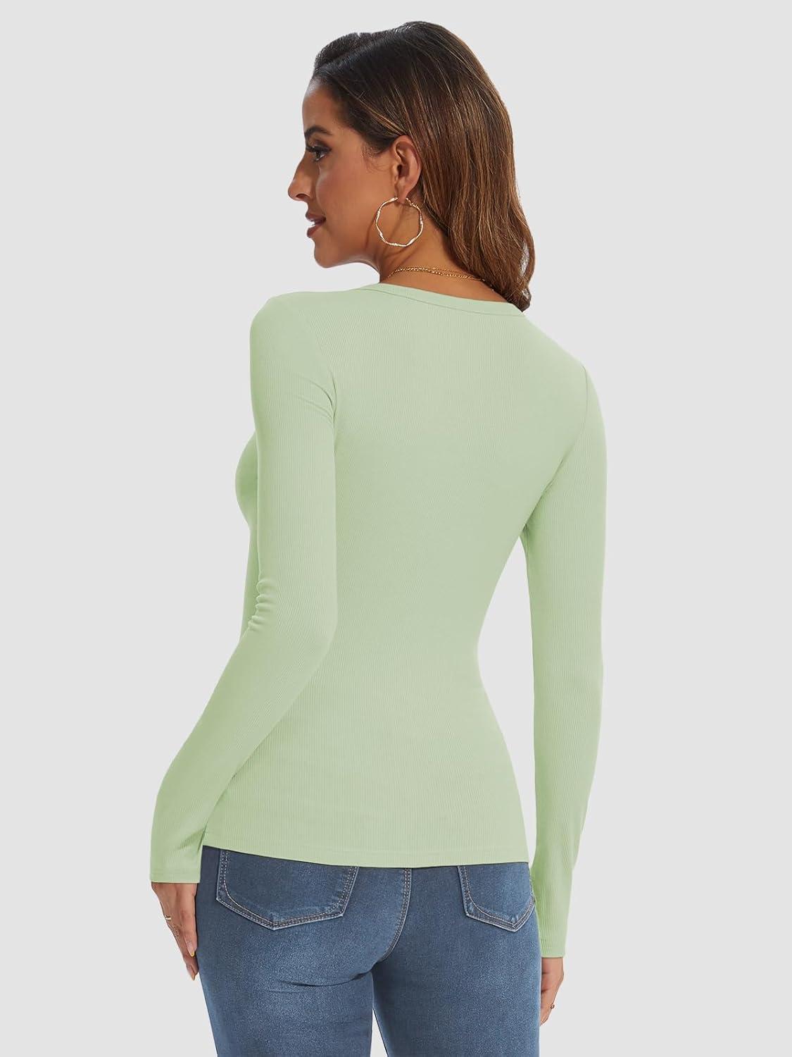 ATHMILE Womens Long Sleeve Crewneck Ribbed Tops Fall Fitted Stretch Casual Basic T Shirts 2025(A-mint Green)