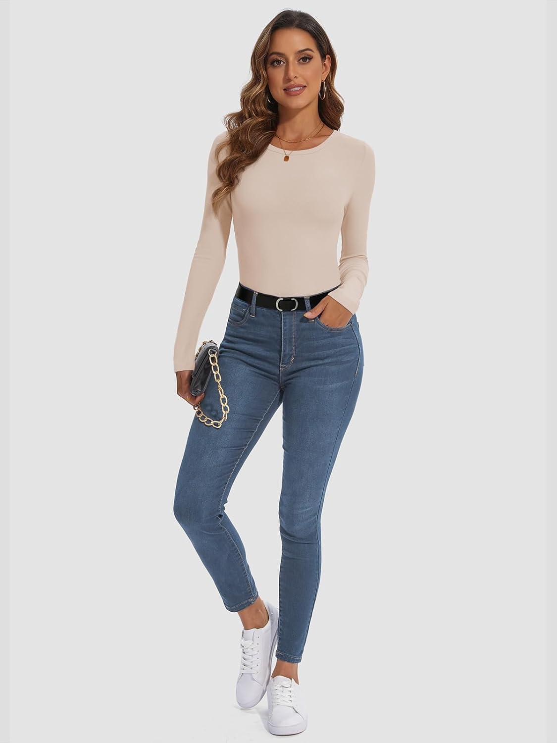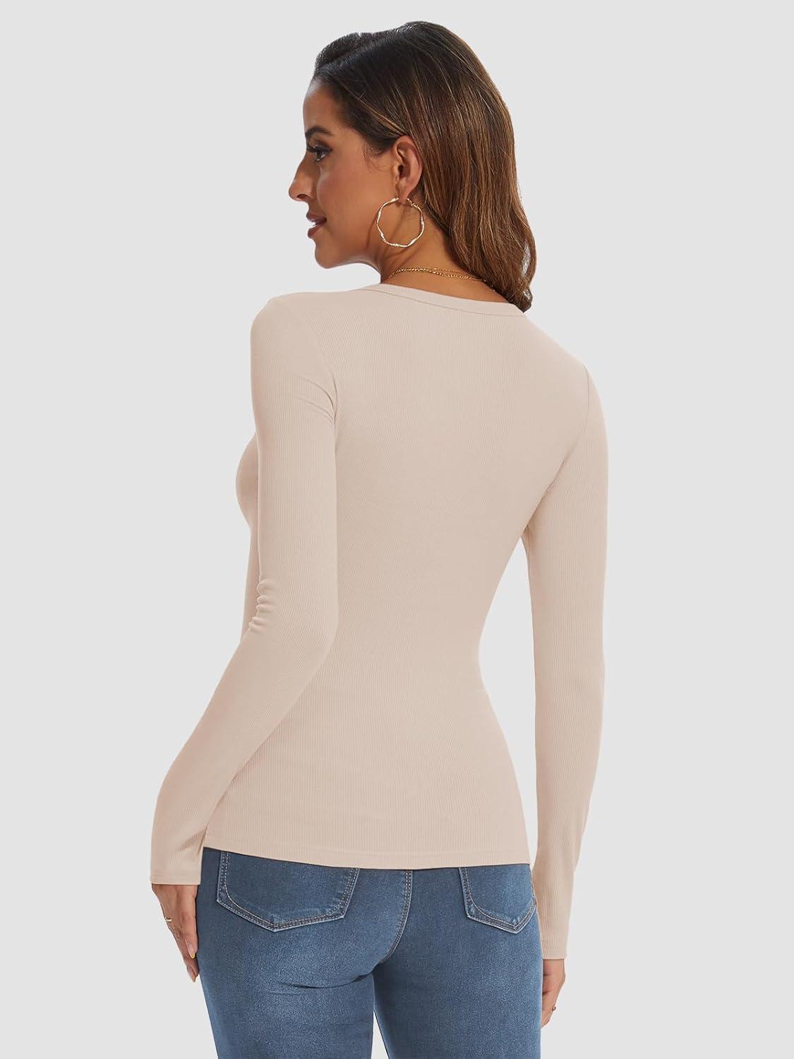 ATHMILE Womens Long Sleeve Crewneck Ribbed Tops Fall Fitted Stretch Casual Basic T Shirts 2025(A-peach)