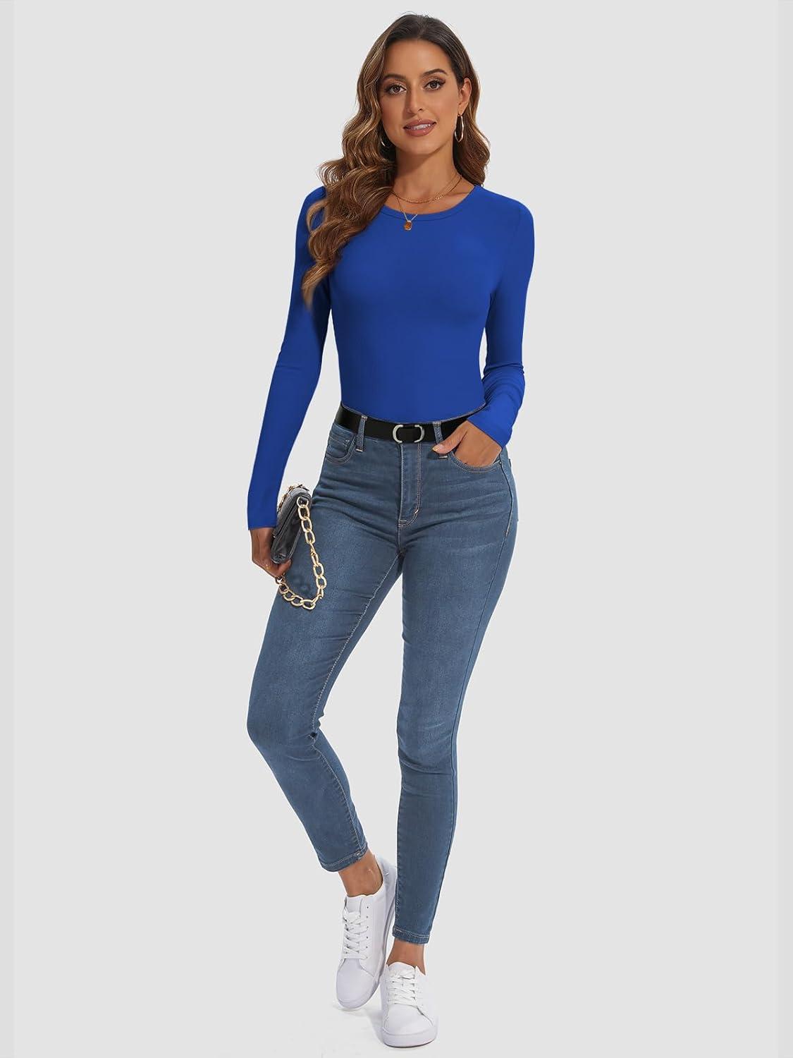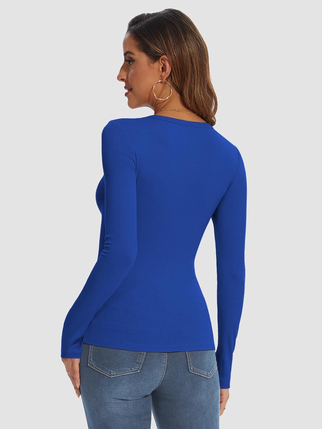 ATHMILE Womens Long Sleeve Crewneck Ribbed Tops Fall Fitted Stretch Casual Basic T Shirts 2025(A-royal Blue)