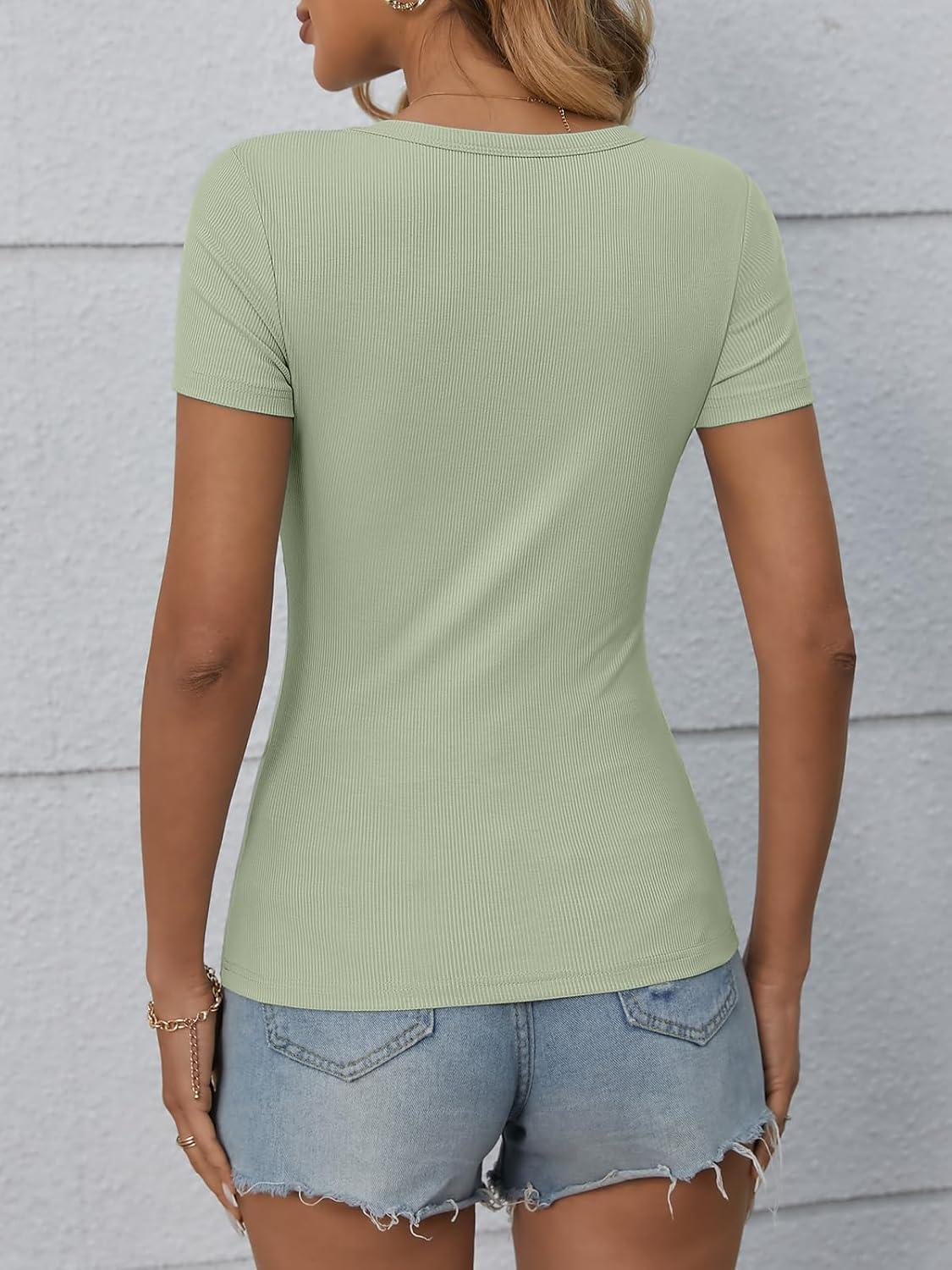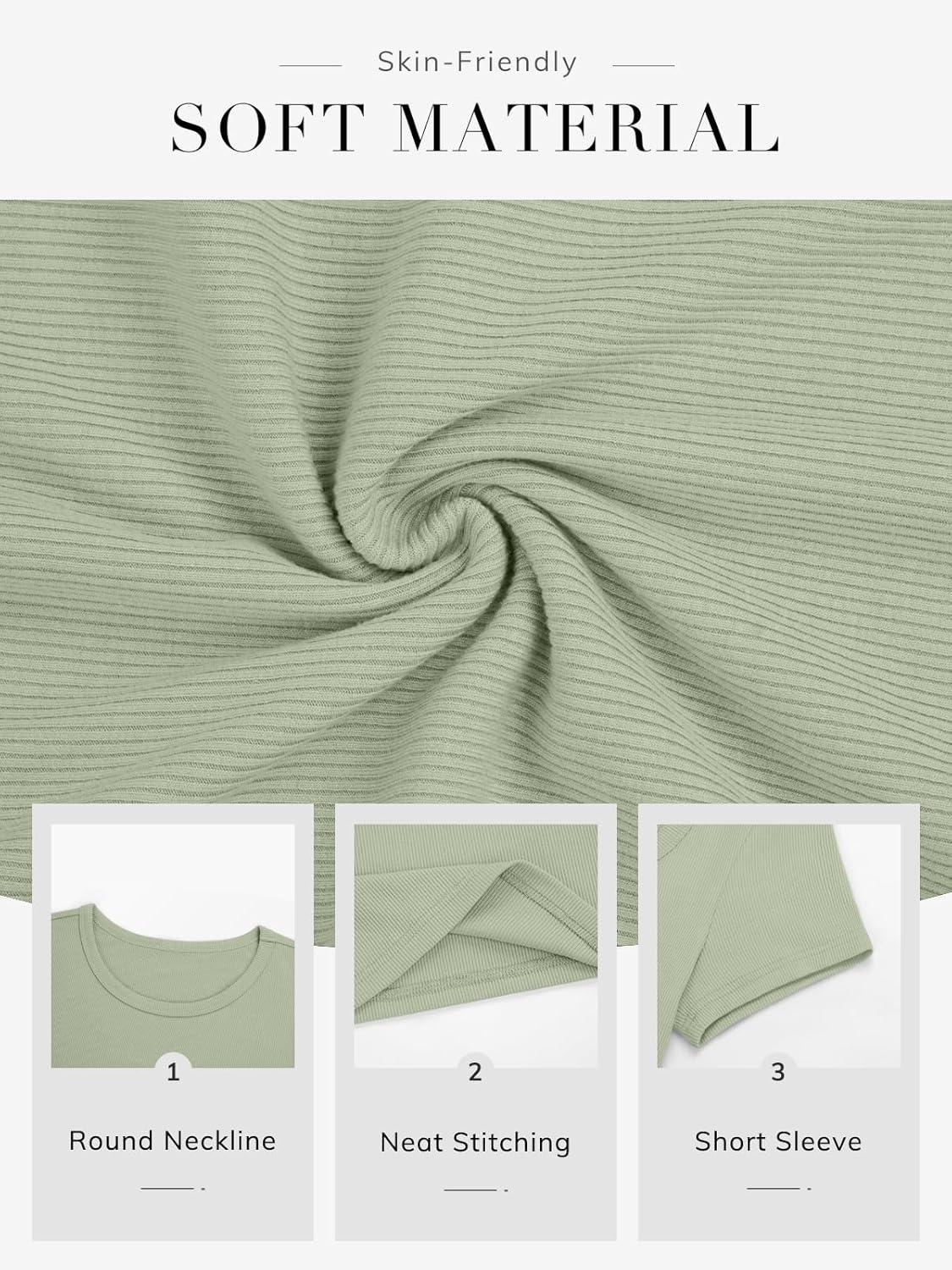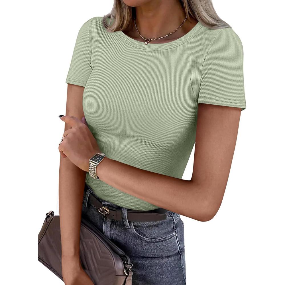 ATHMILE Womens Long Sleeve Crewneck Ribbed Tops Fall Fitted Stretch Casual Basic T Shirts 2025(B-sage Green)
