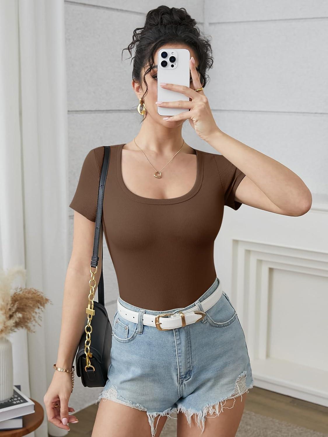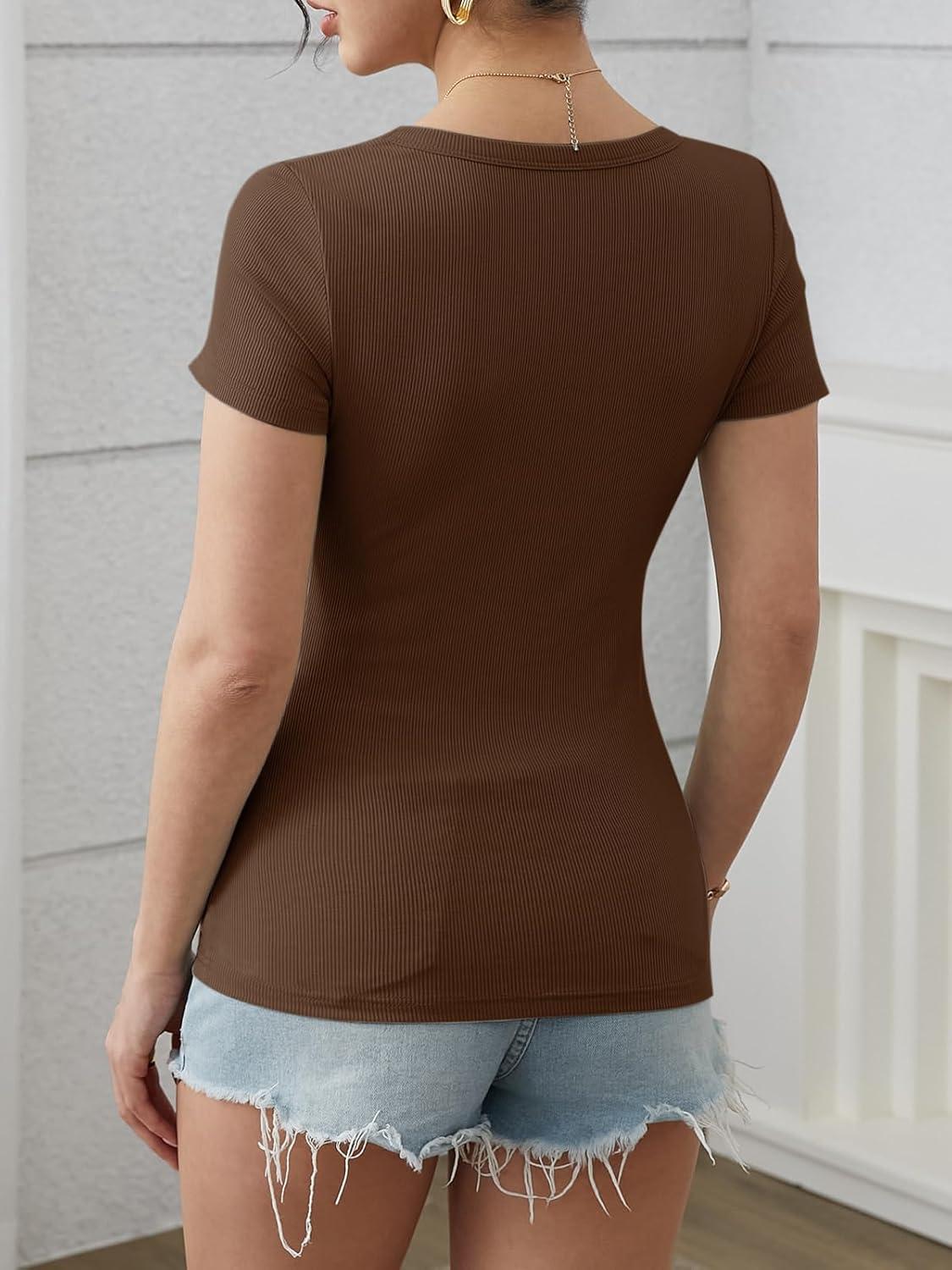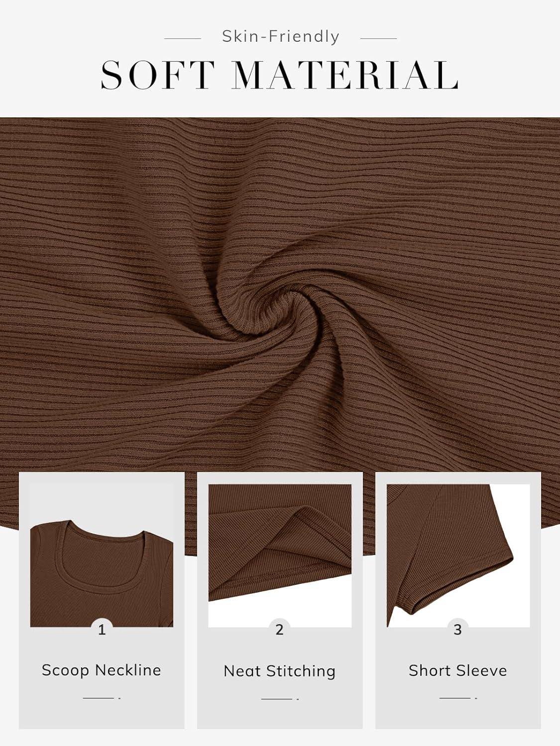 ATHMILE Womens Long Sleeve Tops Fall Scoop Neck Ribbed Knit Shirts Slim Fitted Casual Basic Tee T Shirt for Women 2025(C-brown)