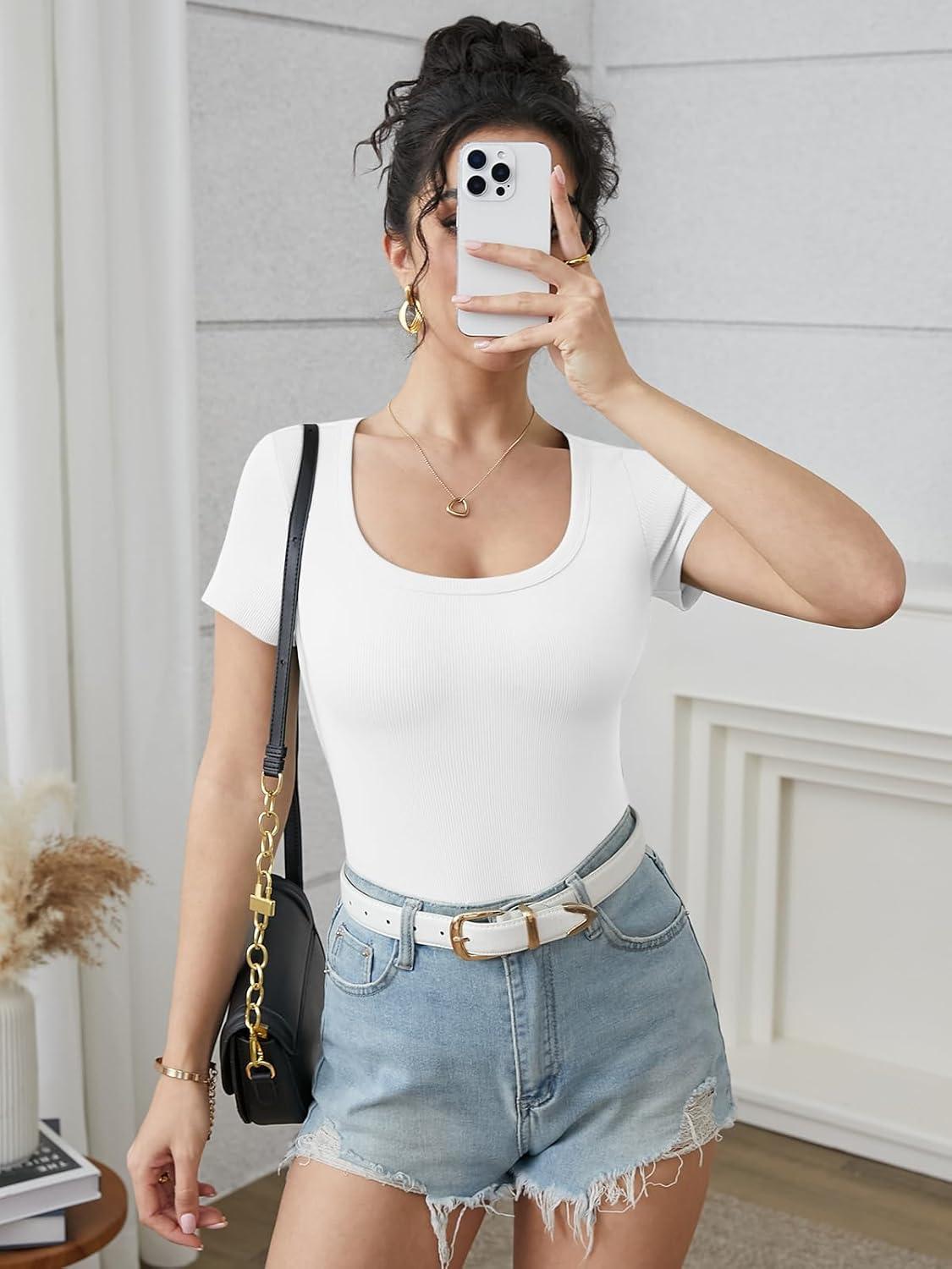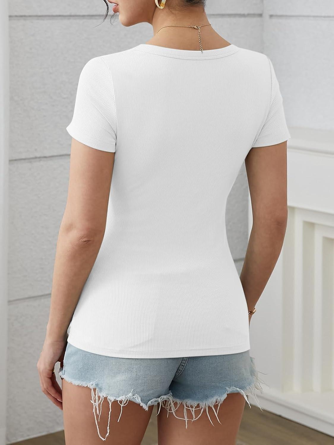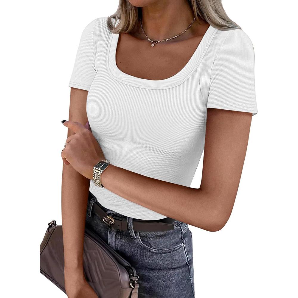 ATHMILE Womens Long Sleeve Tops Fall Scoop Neck Ribbed Knit Shirts Slim Fitted Casual Basic Tee T Shirt for Women 2025(C-white)