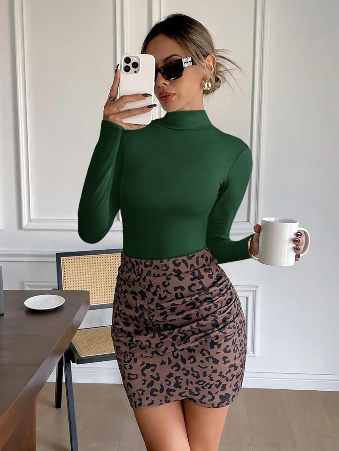 ATHMILE Women’s Mock Turtle Neck Long Sleeve Tops Bodysuit Jumpsuit(Green)
