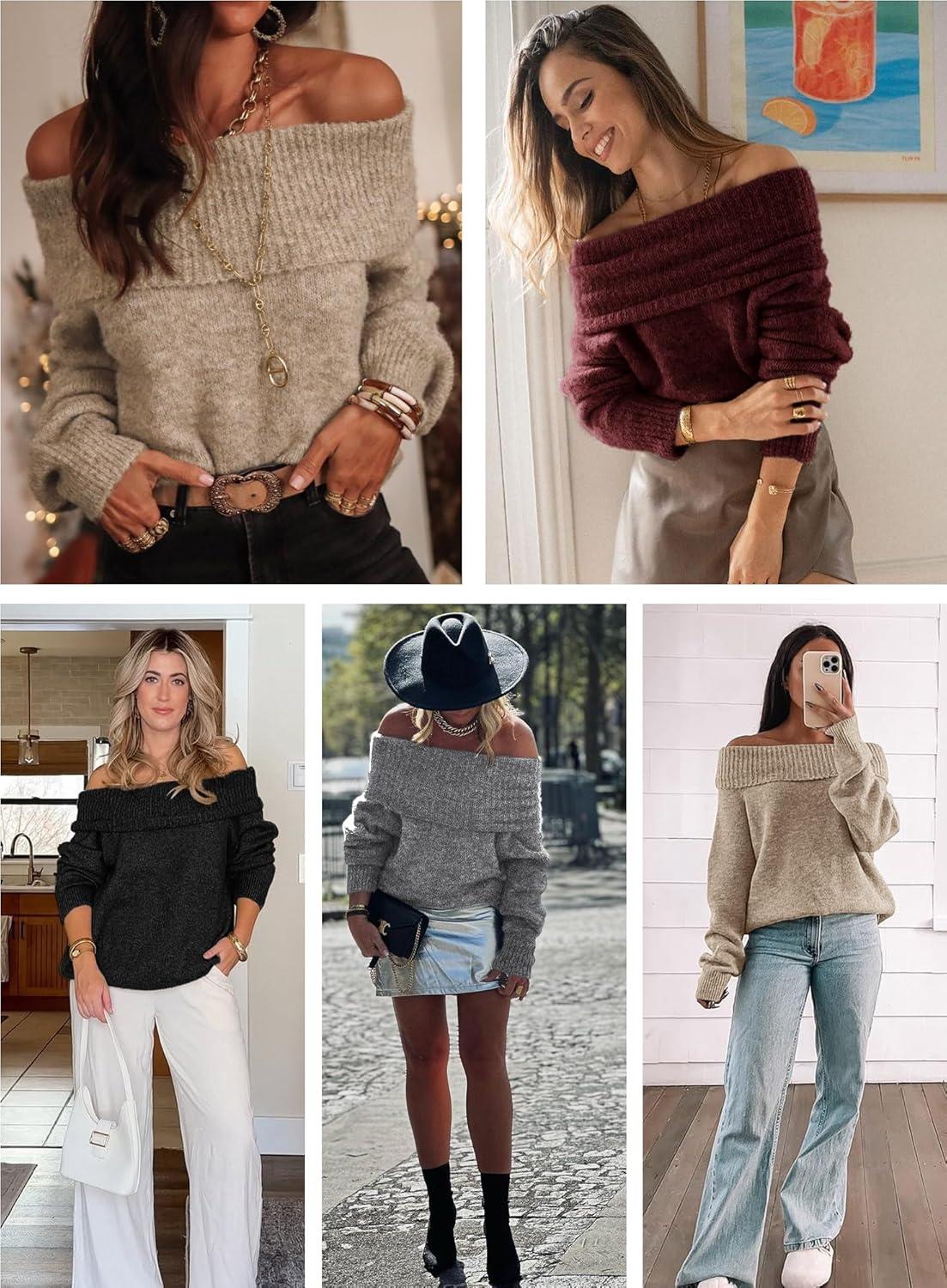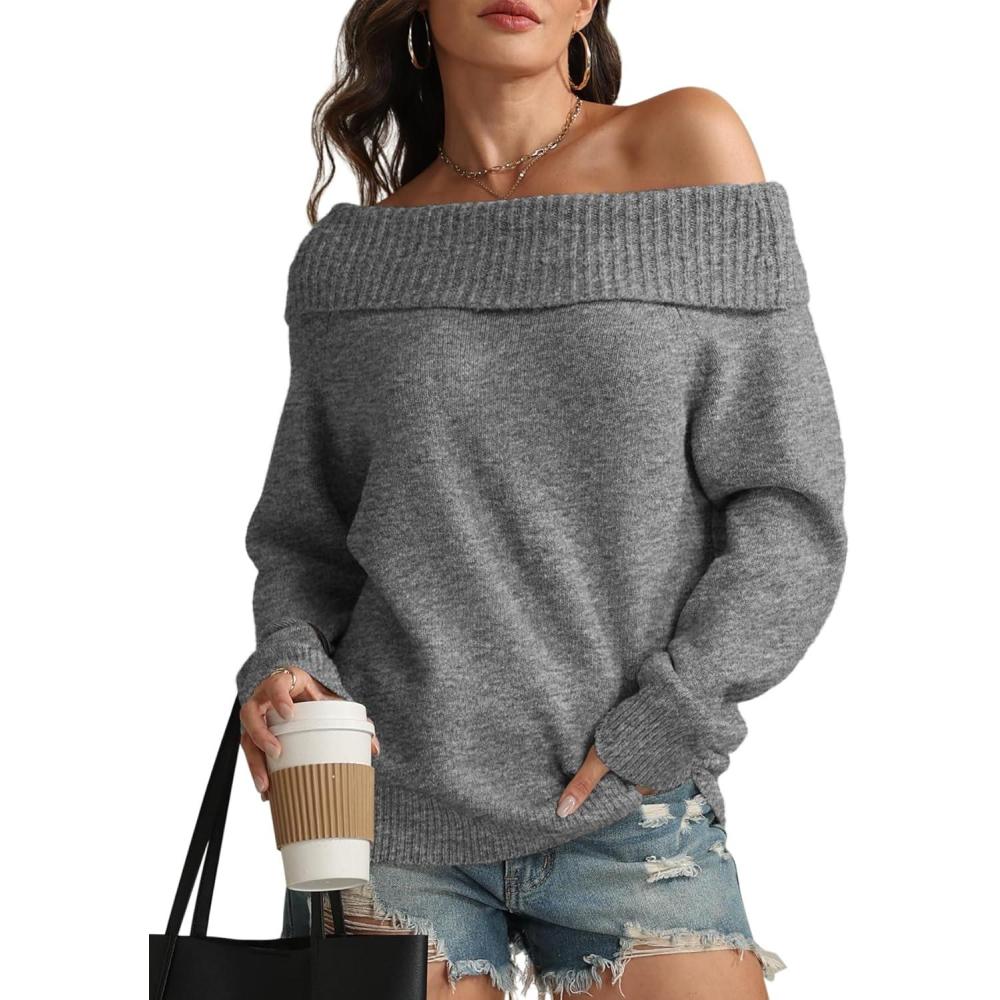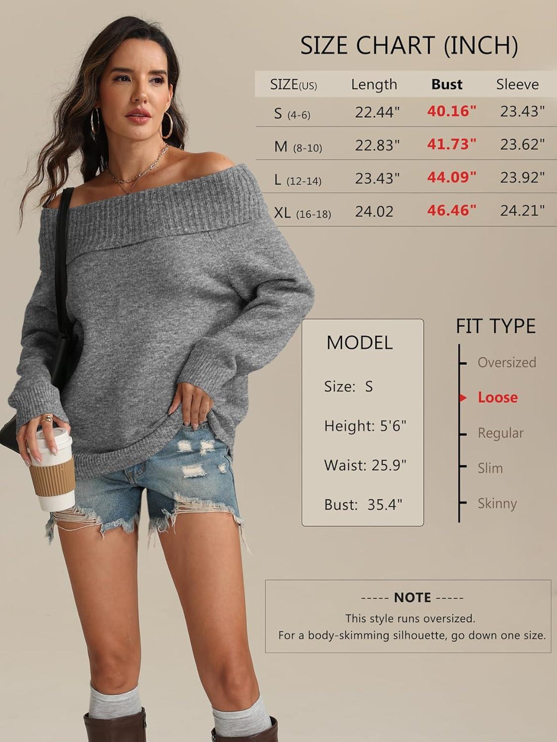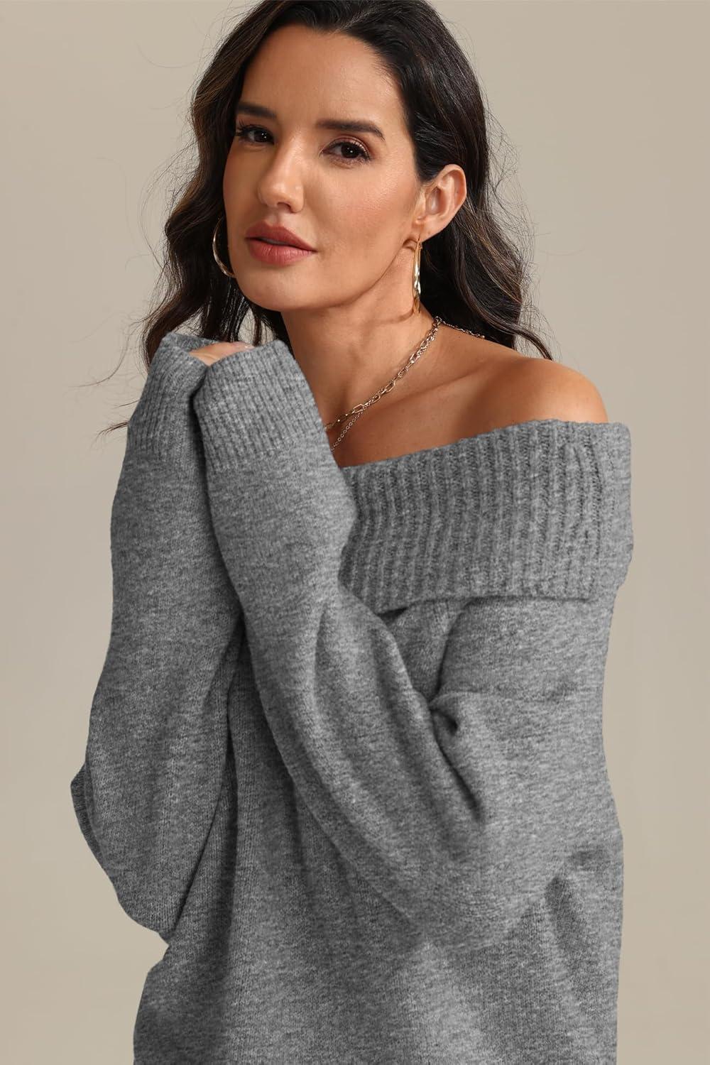 ATHMILE Womens Off The Shoulder Sweaters Oversized Batwing Sleeve Loose Pullover Fall Outfits Winter Fashion Tops 2025(Dark Grey)