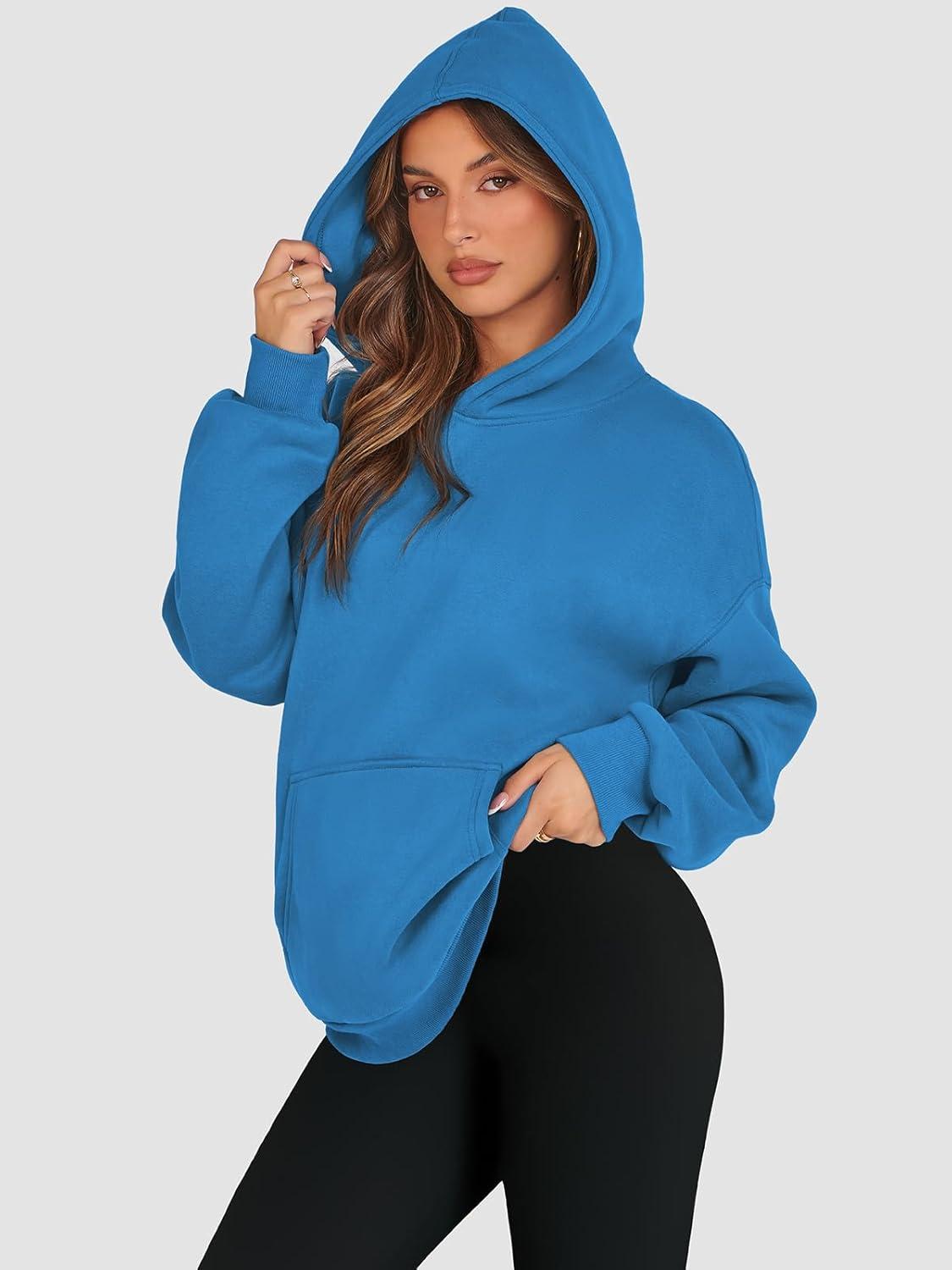 ATHMILE Womens Oversized Hoodies Fleece Sweatshirts Long Sleeve Sweaters Pullover Fall Clothes with Pocket(Blue)