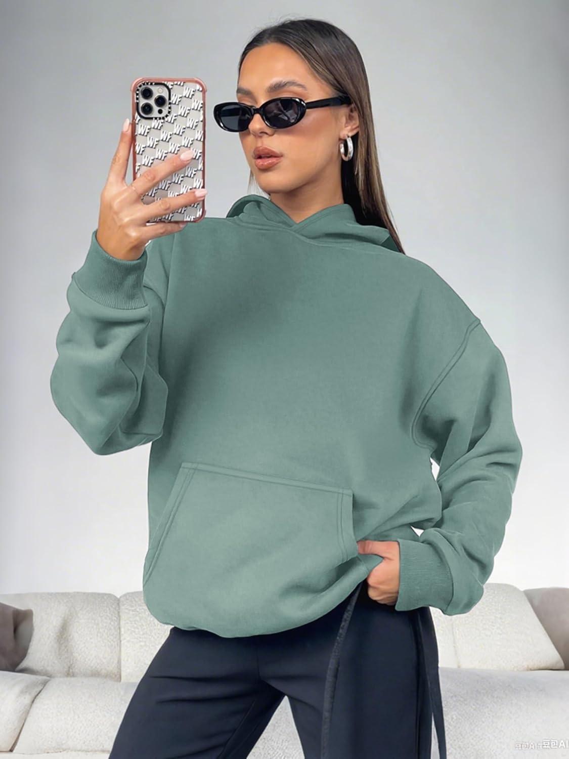ATHMILE Womens Oversized Hoodies Fleece Sweatshirts Long Sleeve Sweaters Pullover Fall Clothes with Pocket(Lake Green)