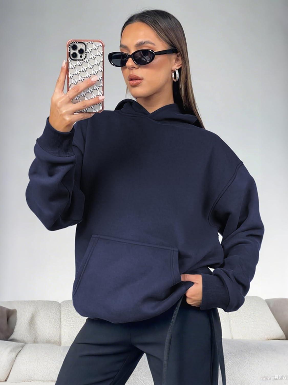 ATHMILE Womens Oversized Hoodies Fleece Sweatshirts Long Sleeve Sweaters Pullover Fall Clothes with Pocket(Navy)