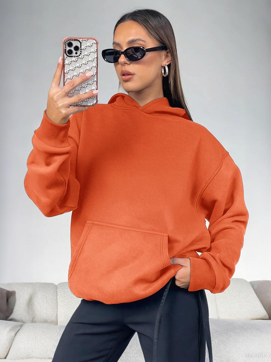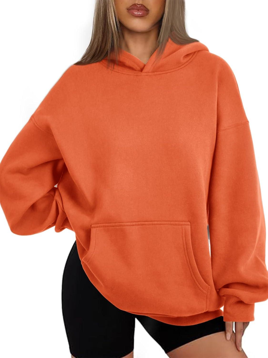 ATHMILE Womens Oversized Hoodies Fleece Sweatshirts Long Sleeve Sweaters Pullover Fall Clothes with Pocket(Orange)