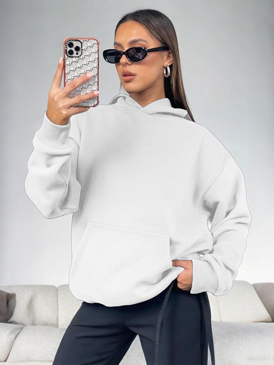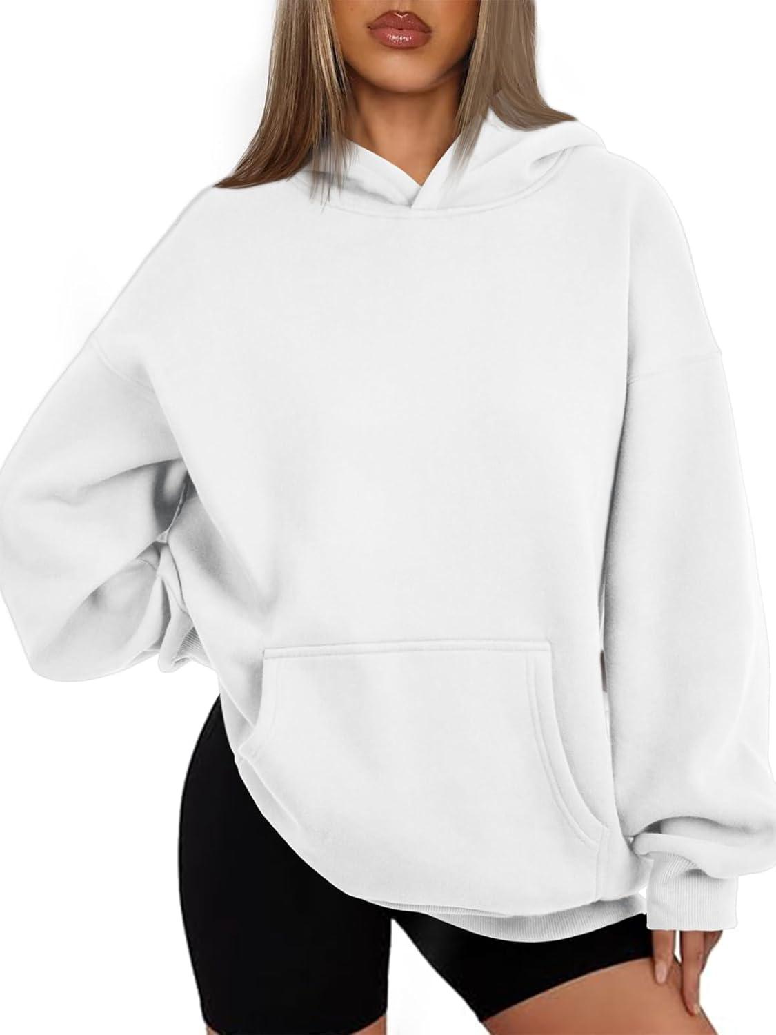 ATHMILE Womens Oversized Hoodies Fleece Sweatshirts Long Sleeve Sweaters Pullover Fall Clothes with Pocket(White)
