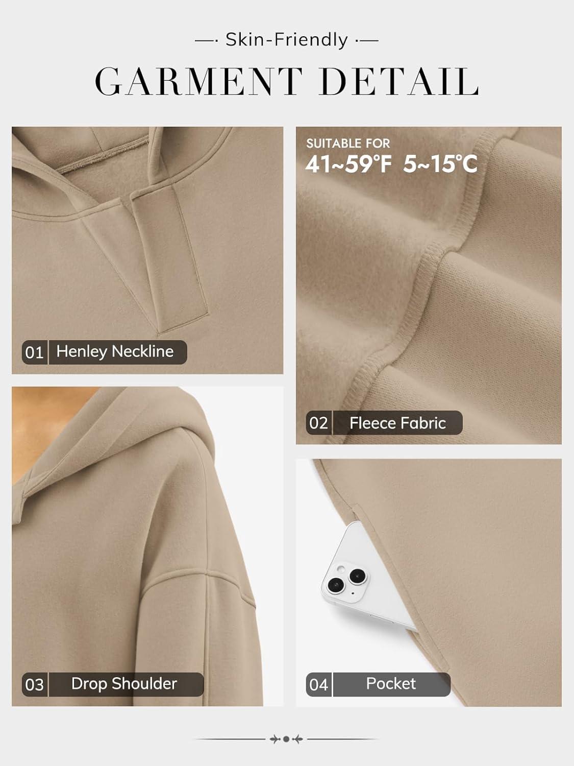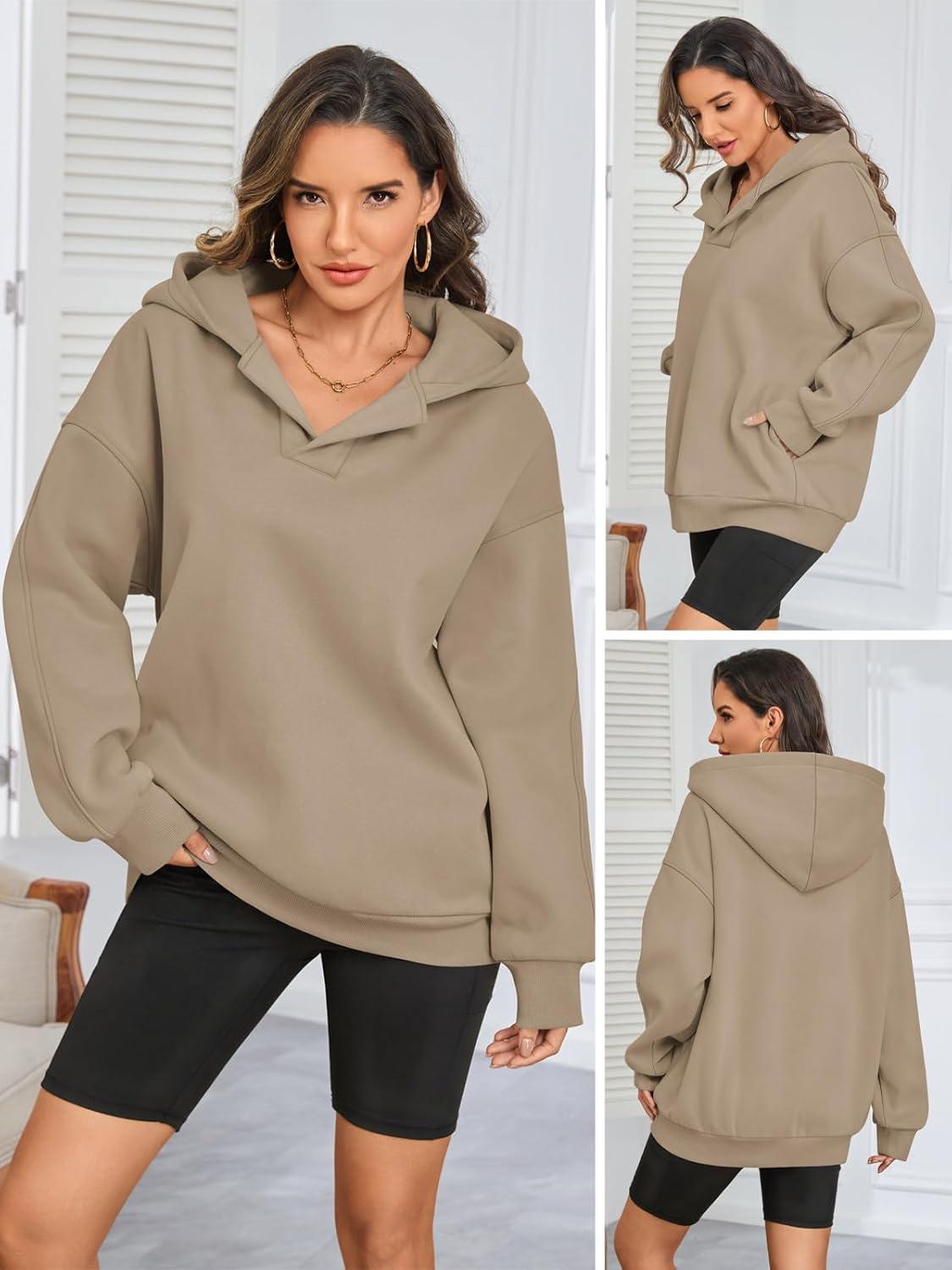 ATHMILE Womens Oversized Hoodies V Neck Sweatshirts Y2K Clothes Long Sleeve Pullover Fall Winter Fashion Henley Outfits 2025(Coffee Grey)