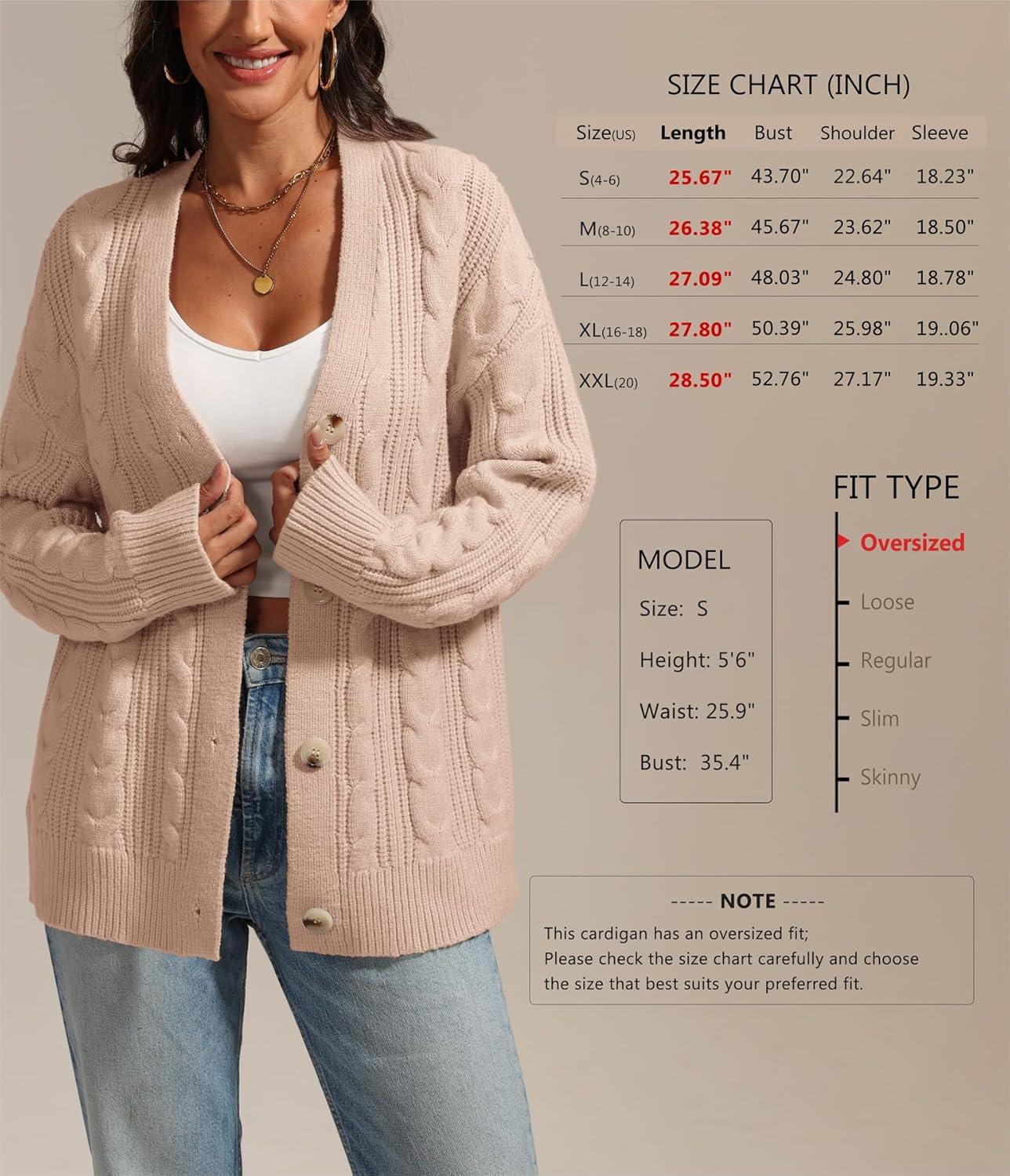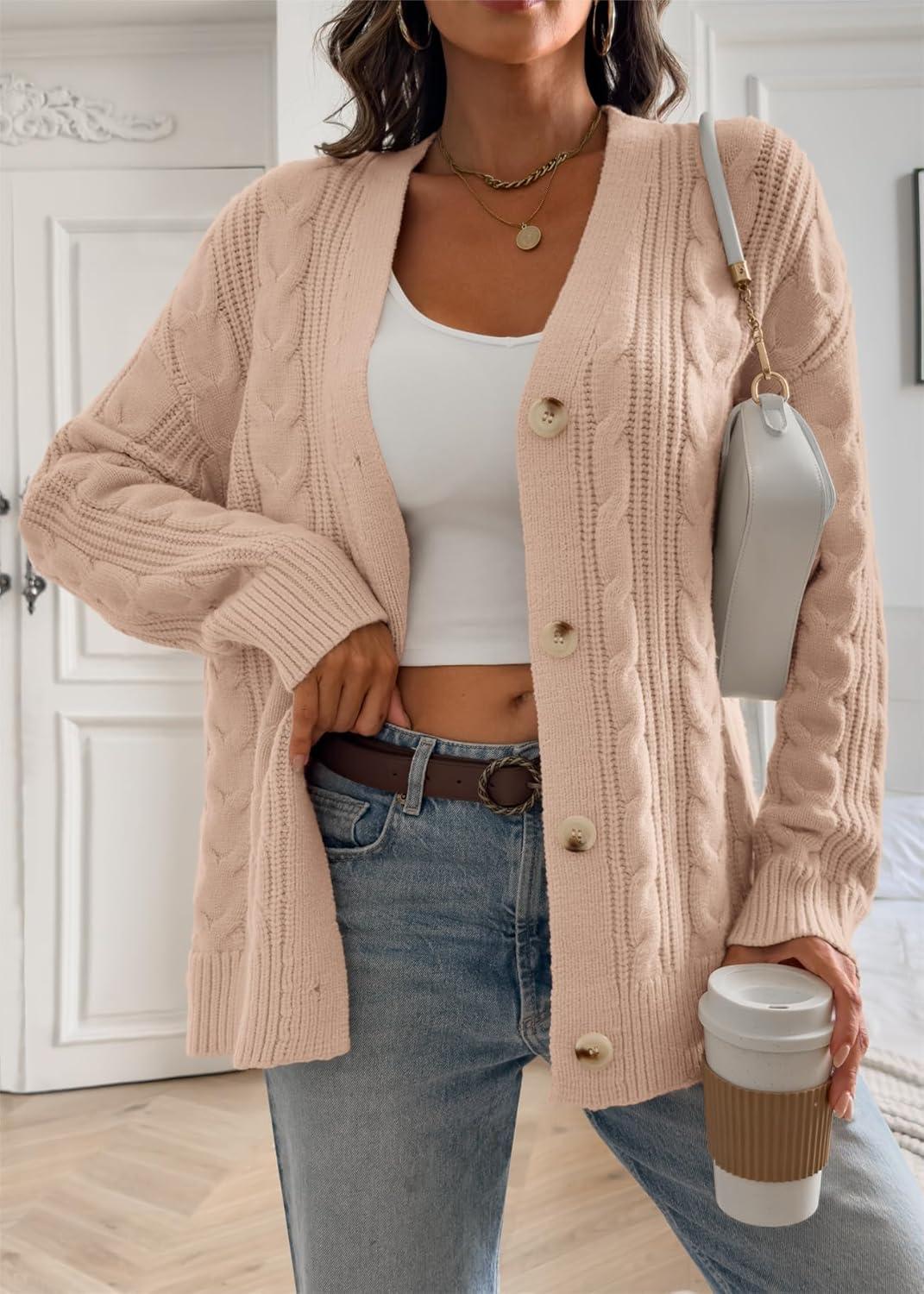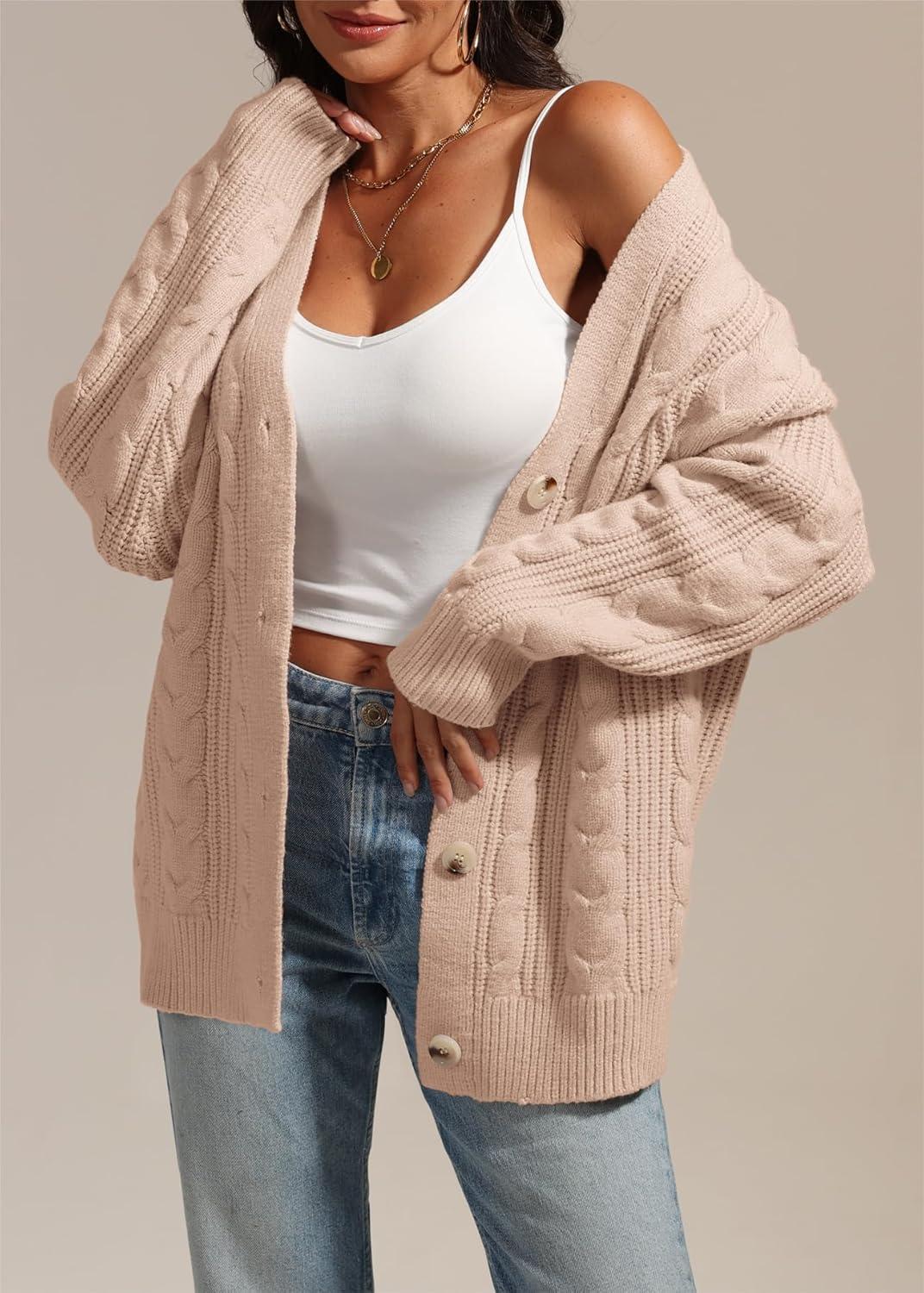 ATHMILE Womens Oversized Sweaters Cable Knit Cardigan Fall Fashion Long Sleeve Open Front Chunky Winter Coats 2025(Apricot)