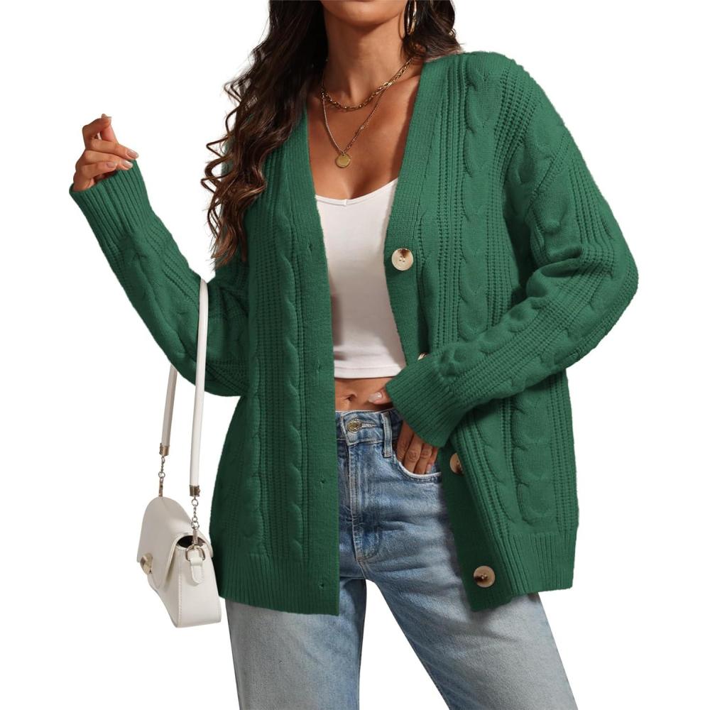 ATHMILE Womens Oversized Sweaters Cable Knit Cardigan Fall Fashion Long Sleeve Open Front Chunky Winter Coats 2025(Dark Green)