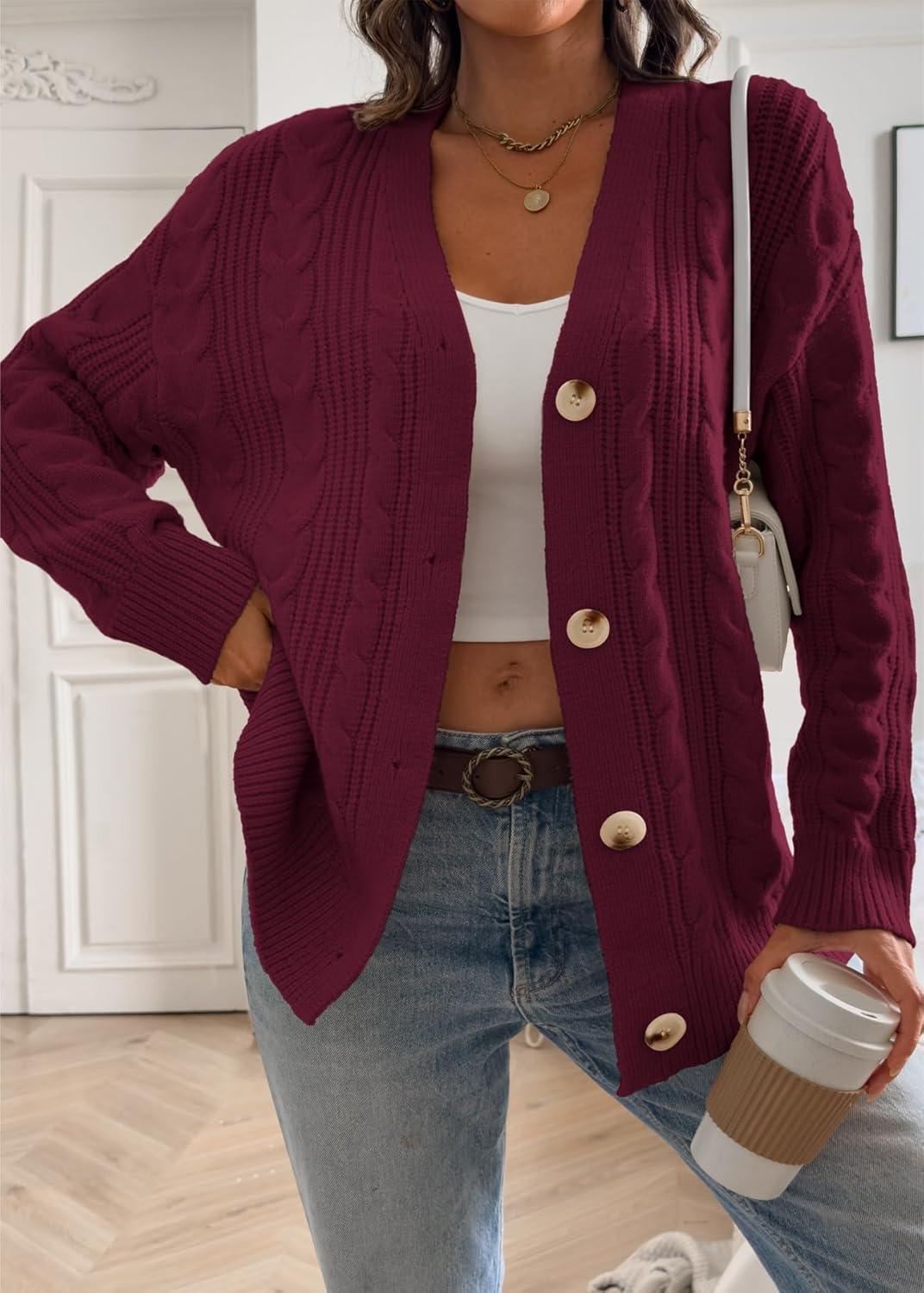 ATHMILE Womens Cardigan Sweaters Casual Long Sleeve Button Down Crewneck Casual Knit Trendy Jackets Cropped Fall Winter Clothes