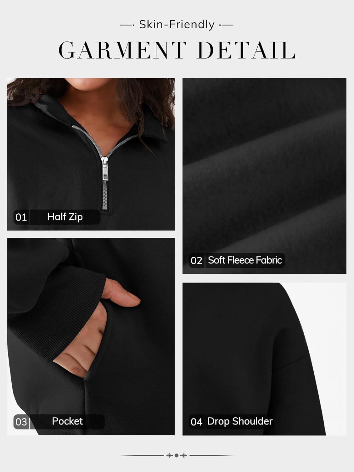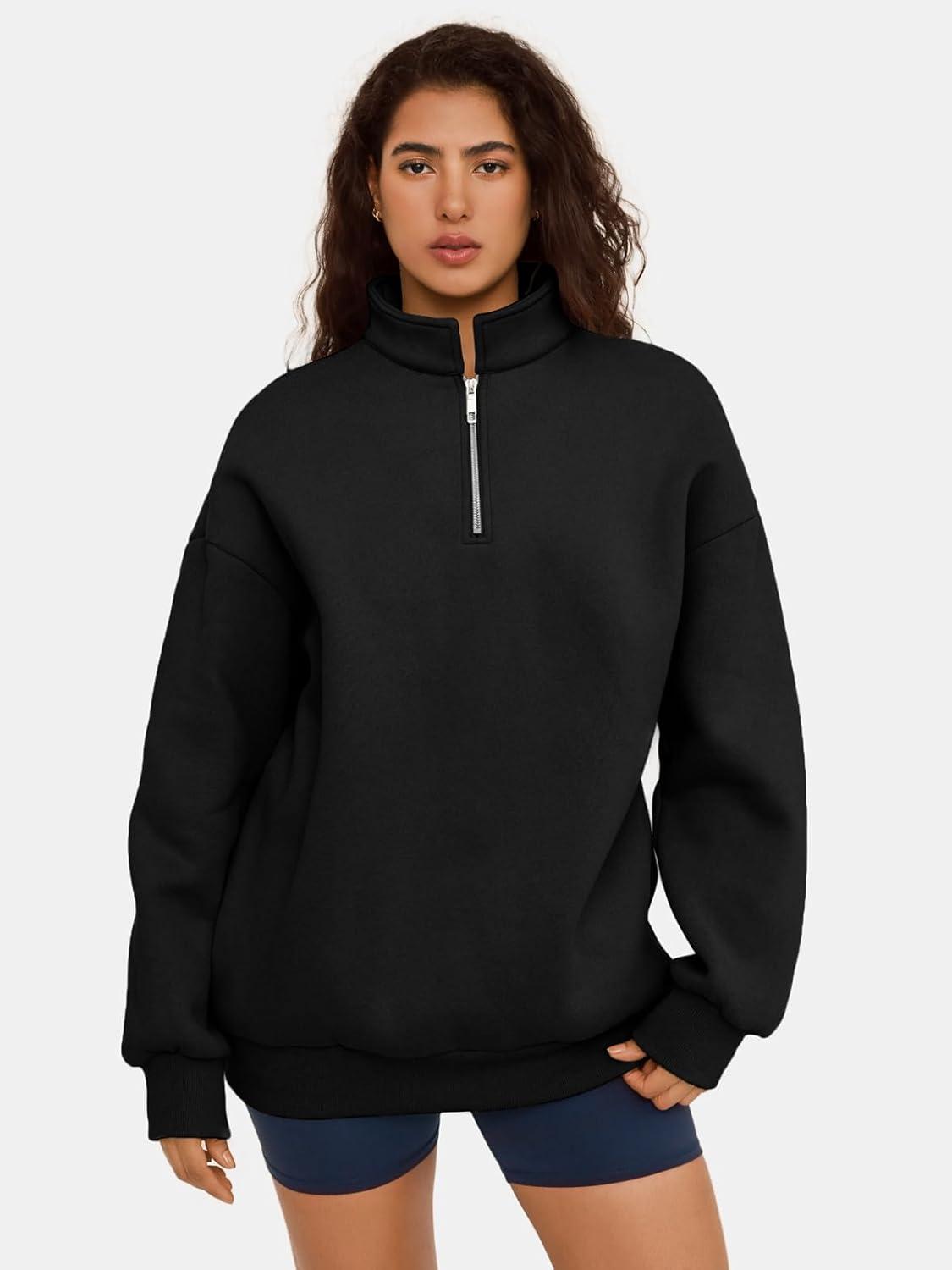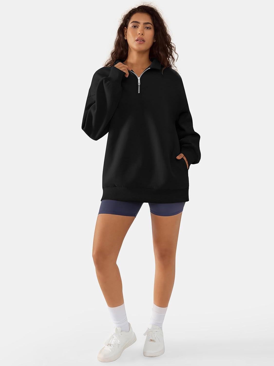 ATHMILE Womens Oversized Sweatshirts Fall Fashion Hoodies Half Zip Fleece Pullover Long Sleeve Y2K Clothes with Side Pockets(Black)
