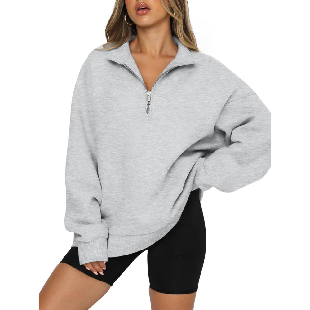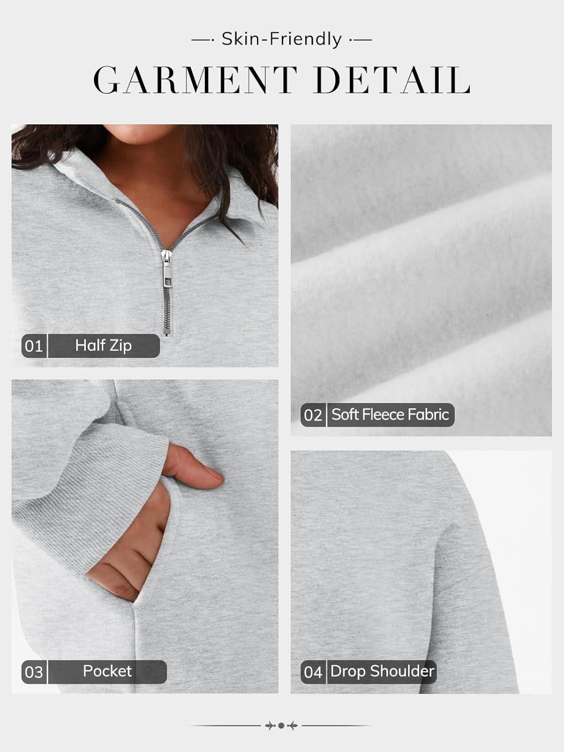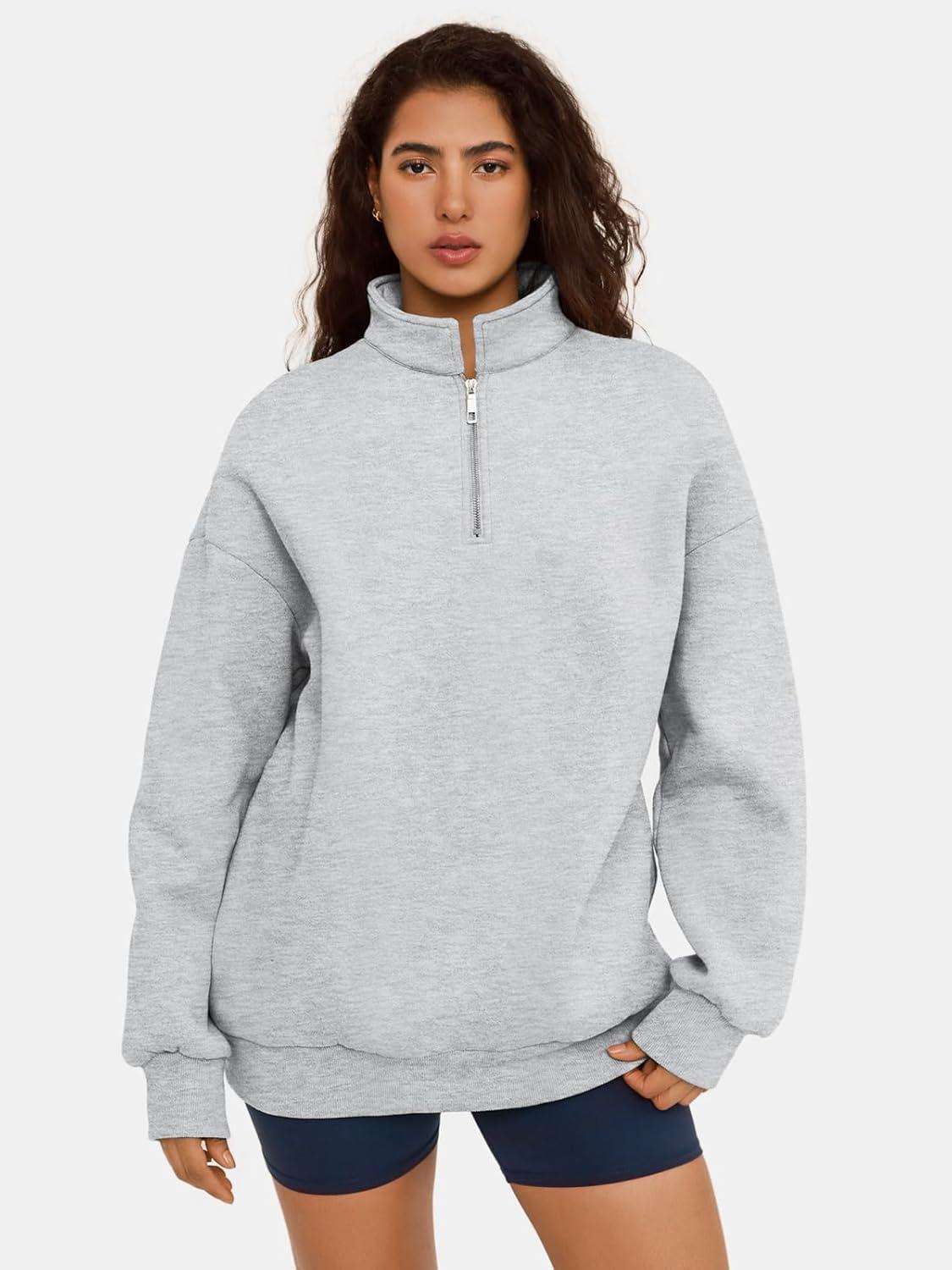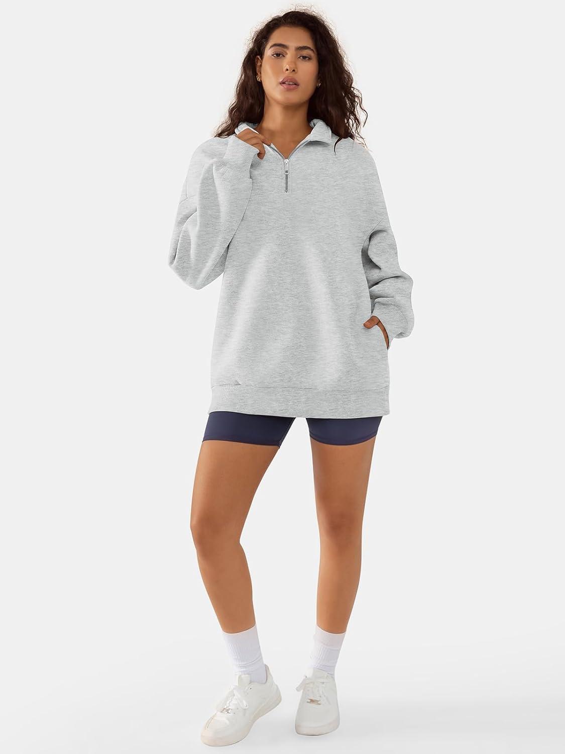 ATHMILE Womens Oversized Sweatshirts Fall Fashion Hoodies Half Zip Fleece Pullover Long Sleeve Y2K Clothes with Side Pockets(Grey)