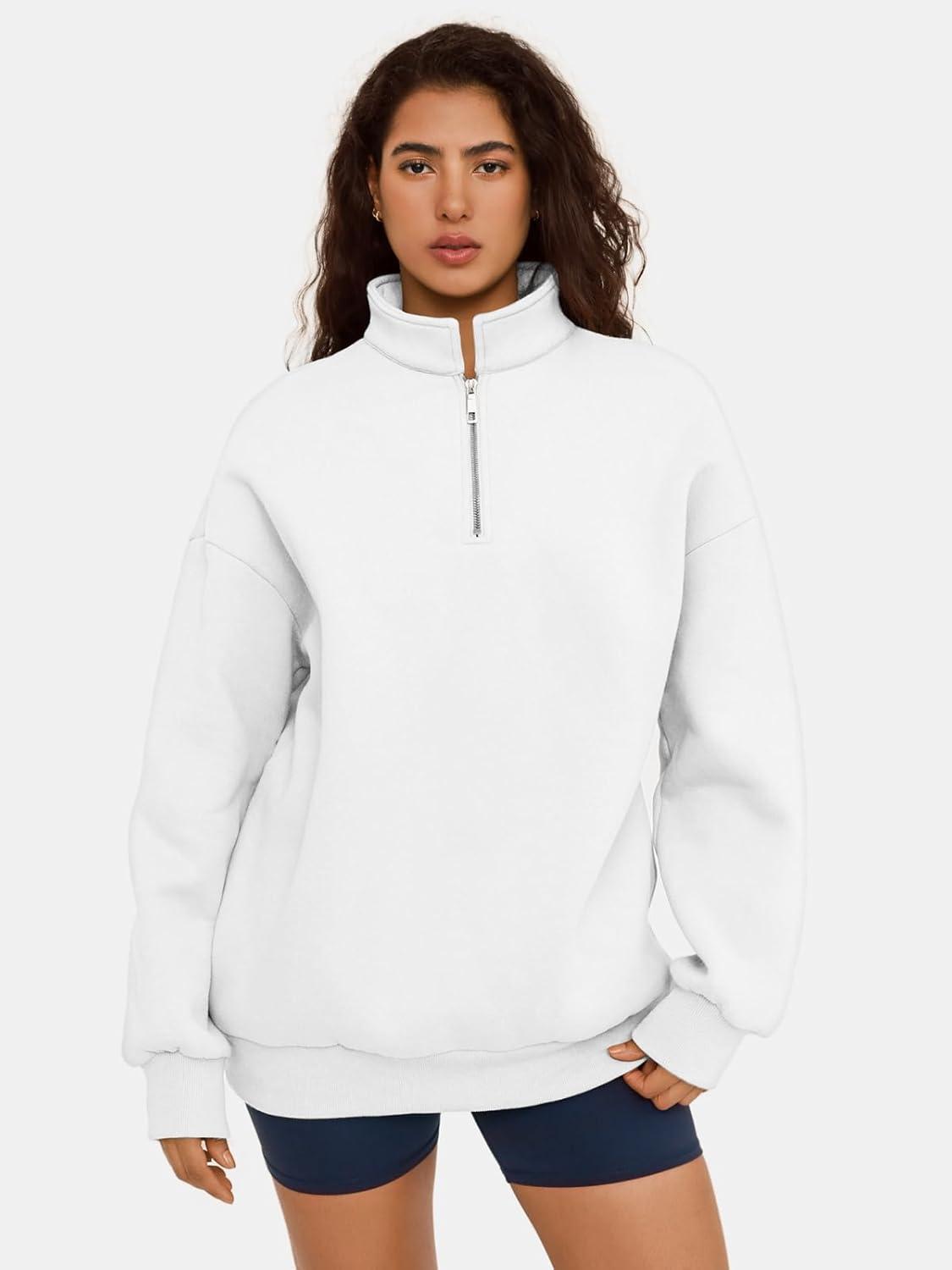 Save up to 40% on ATHMILE Womens Oversized Sweatshirts Fall Fashion Hoodies Half Zip Fleece Pullover Long Sleeve Y2K Clothes with Side Pockets(White) styles during our end-of-season sale.