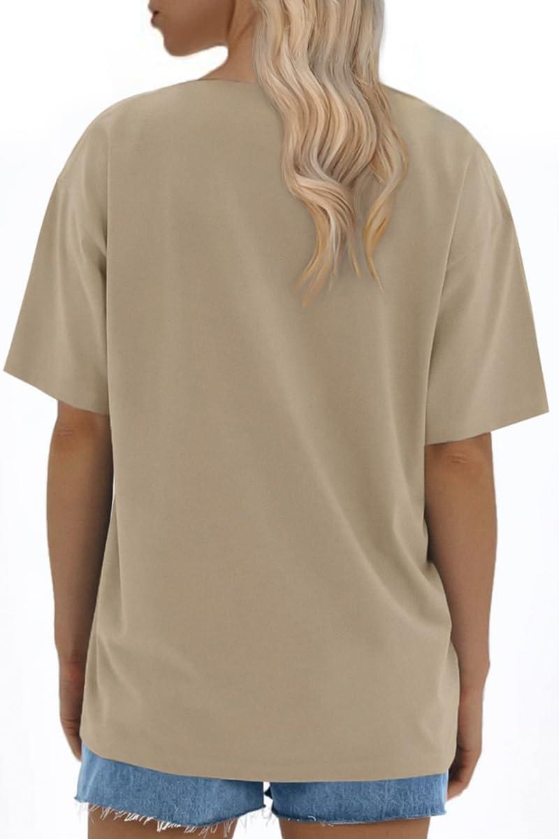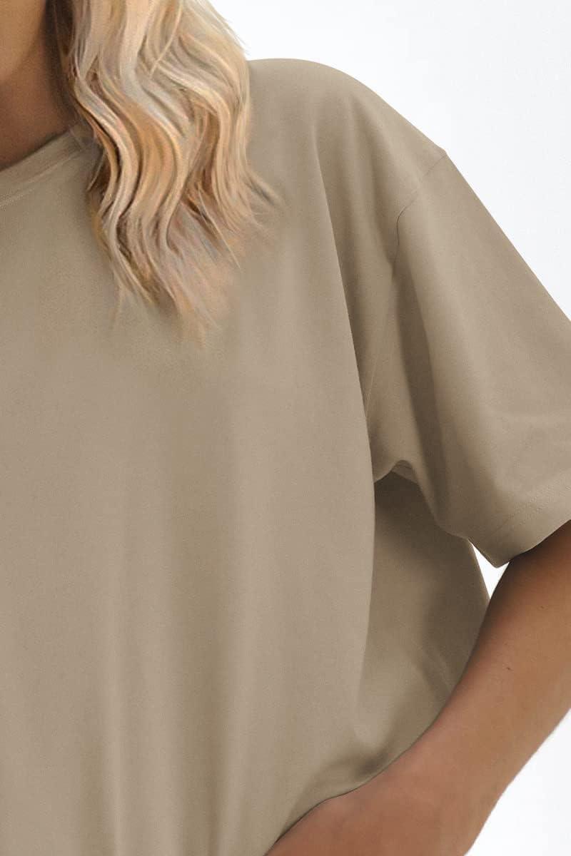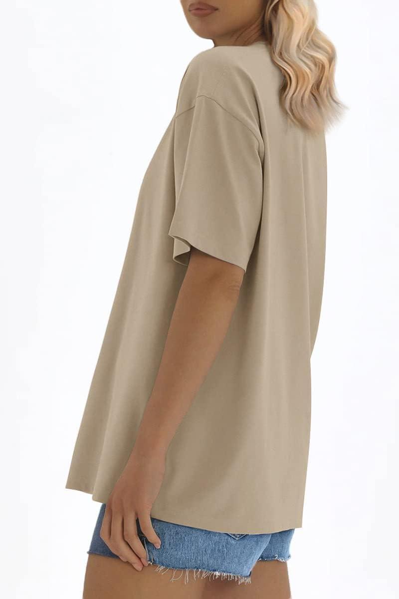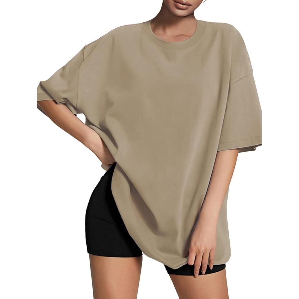 ATHMILE Womens Oversized T Shirts Loose Fit Crewneck Short Sleeve Tops Summer Casual Blouse Y2K Basic Tee 2023(Khaki)