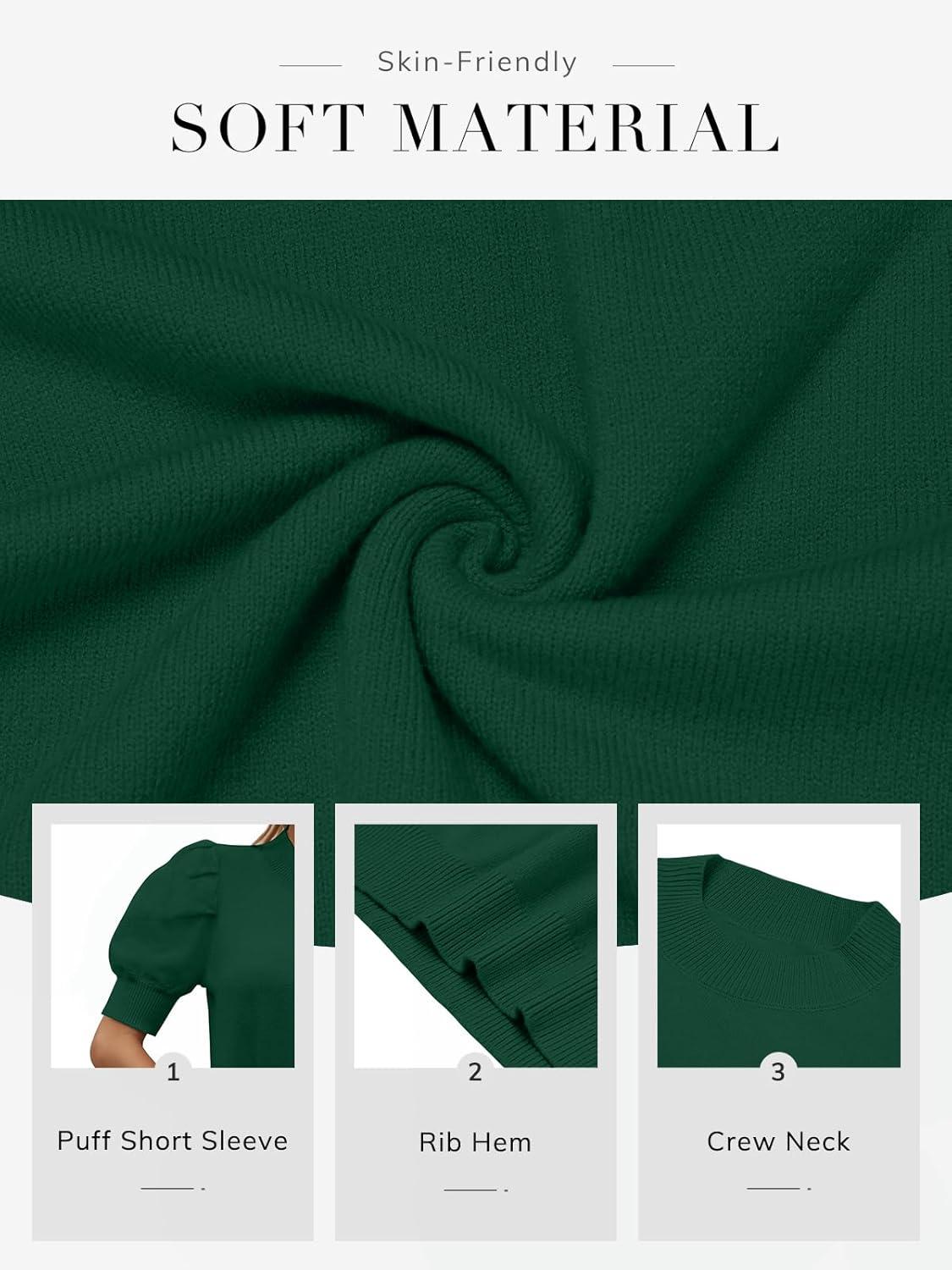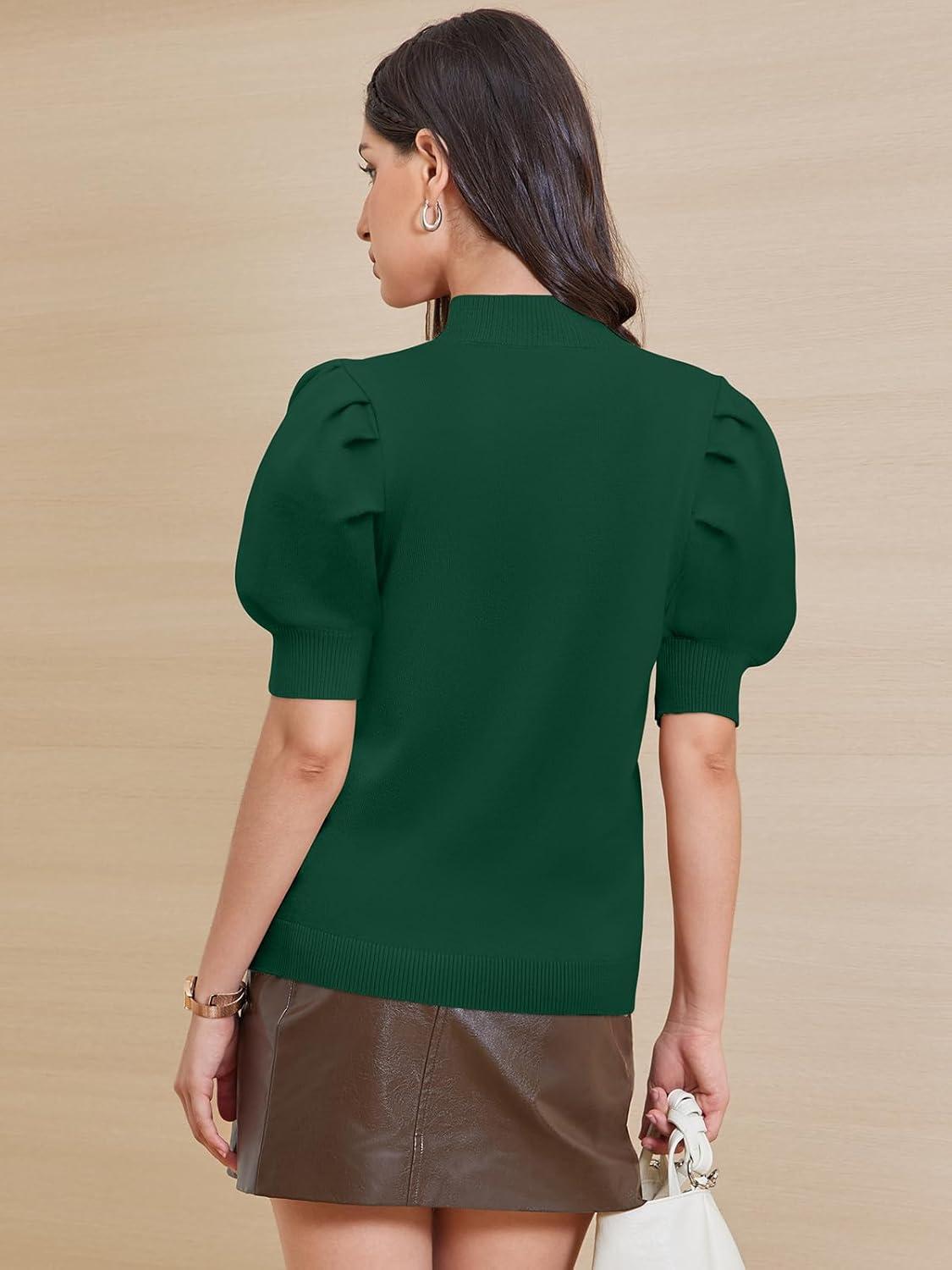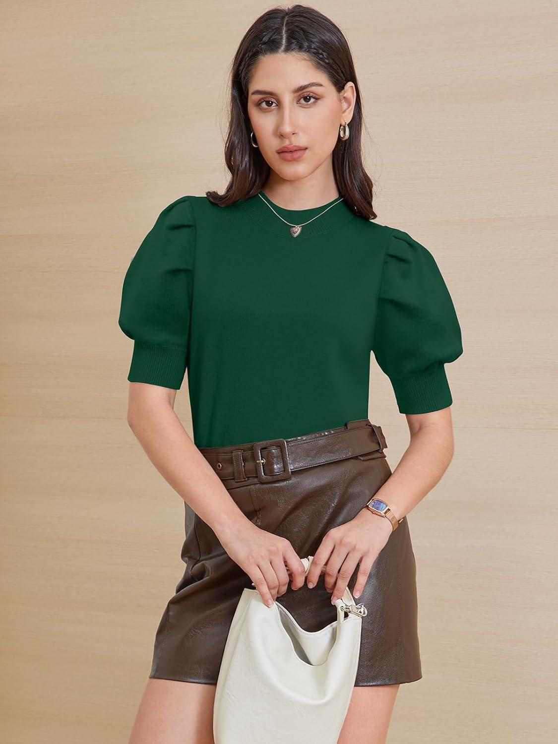 ATHMILE Women’s Puff Short Sleeve Sweater Tops 2025 Spring Summer Fall Trendy Casual T Shirts Blouses(A-dark Green)