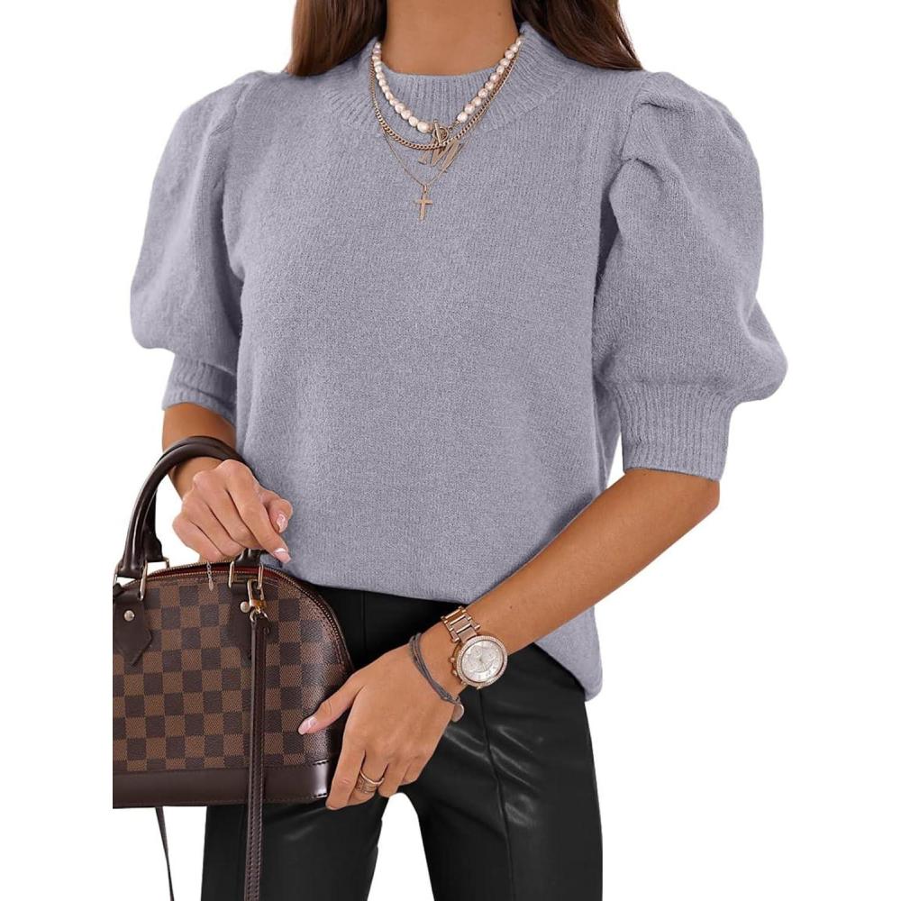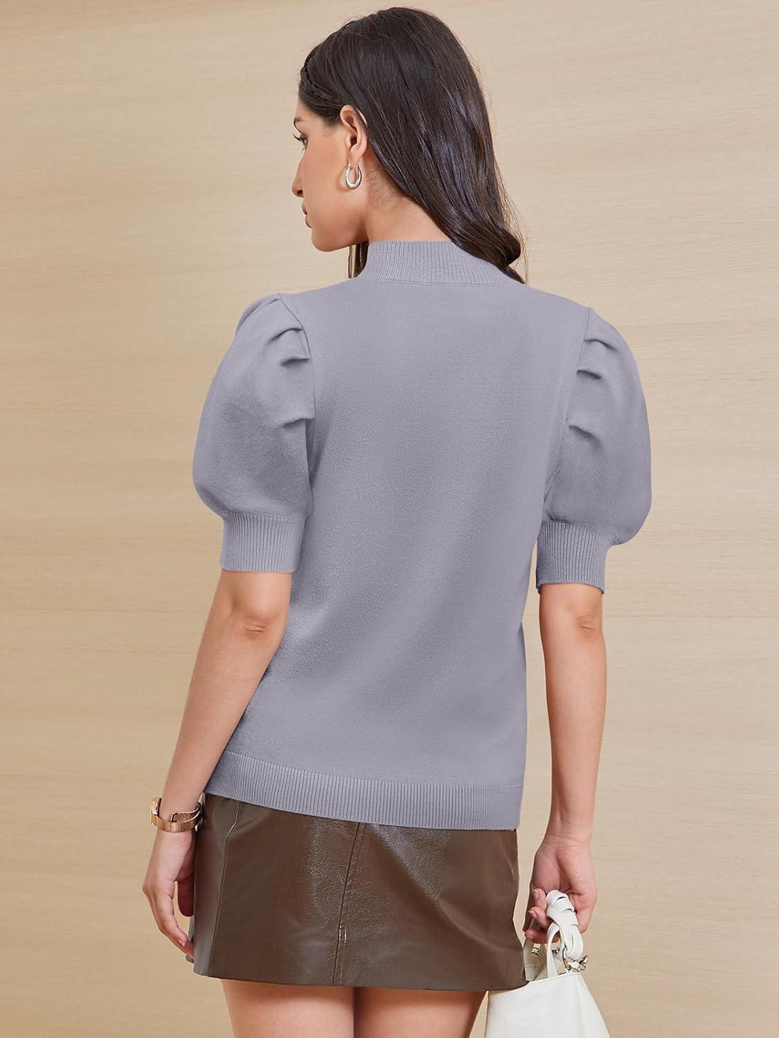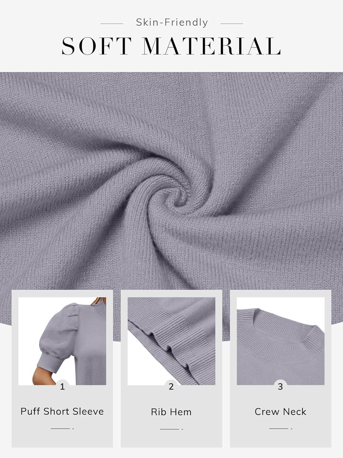 ATHMILE Women’s Puff Short Sleeve Sweater Tops 2025 Spring Summer Fall Trendy Casual T Shirts Blouses(A-greypurple)