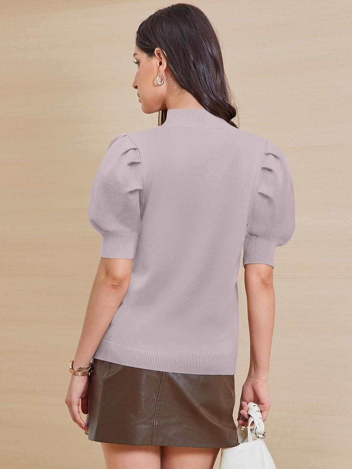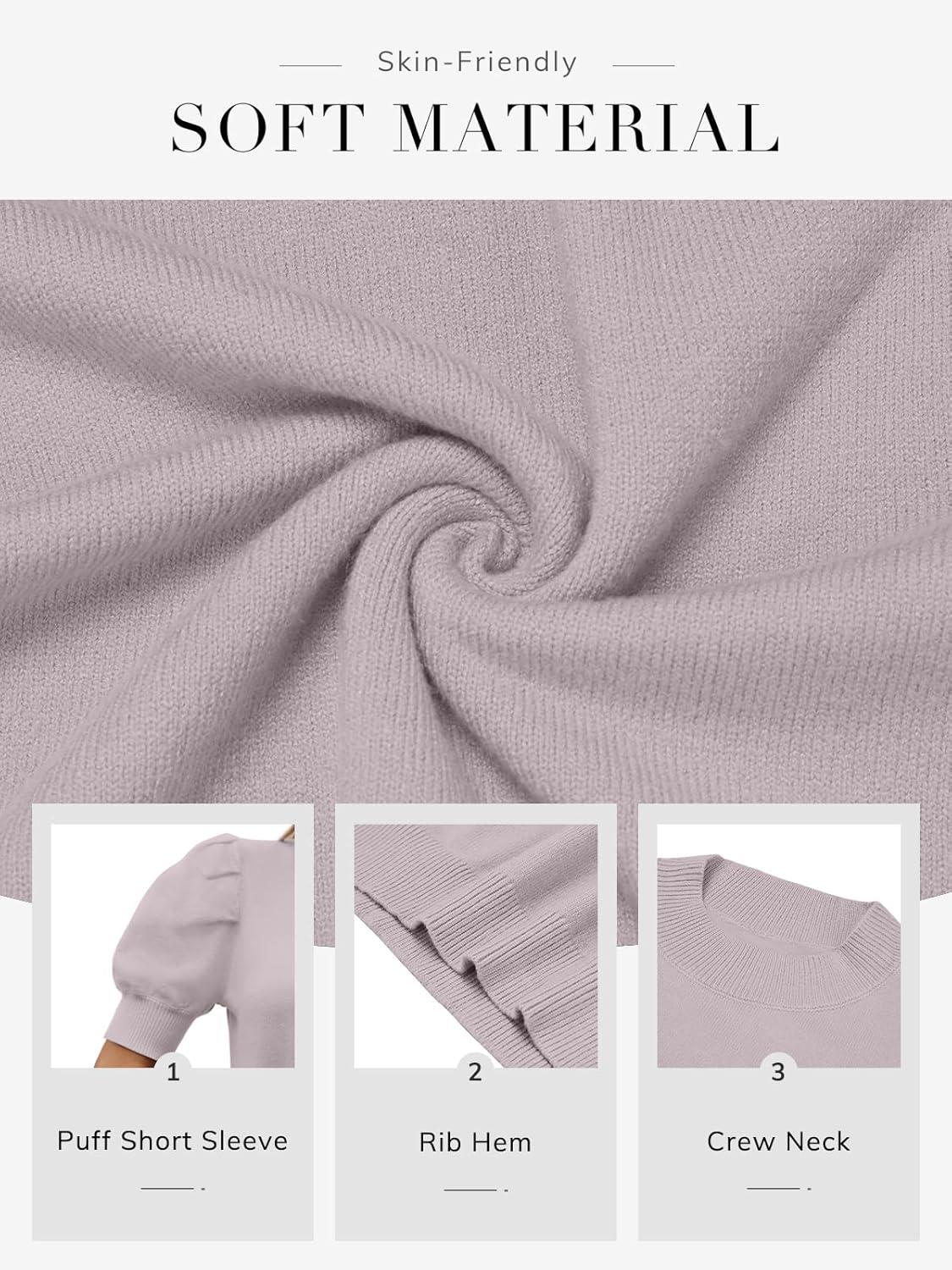 ATHMILE Women’s Puff Short Sleeve Sweater Tops 2025 Spring Summer Fall Trendy Casual T Shirts Blouses(A-greypurple)