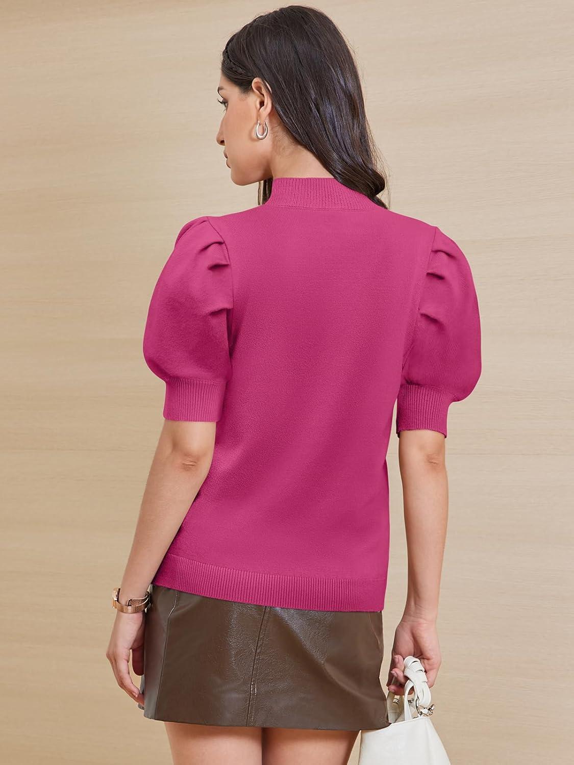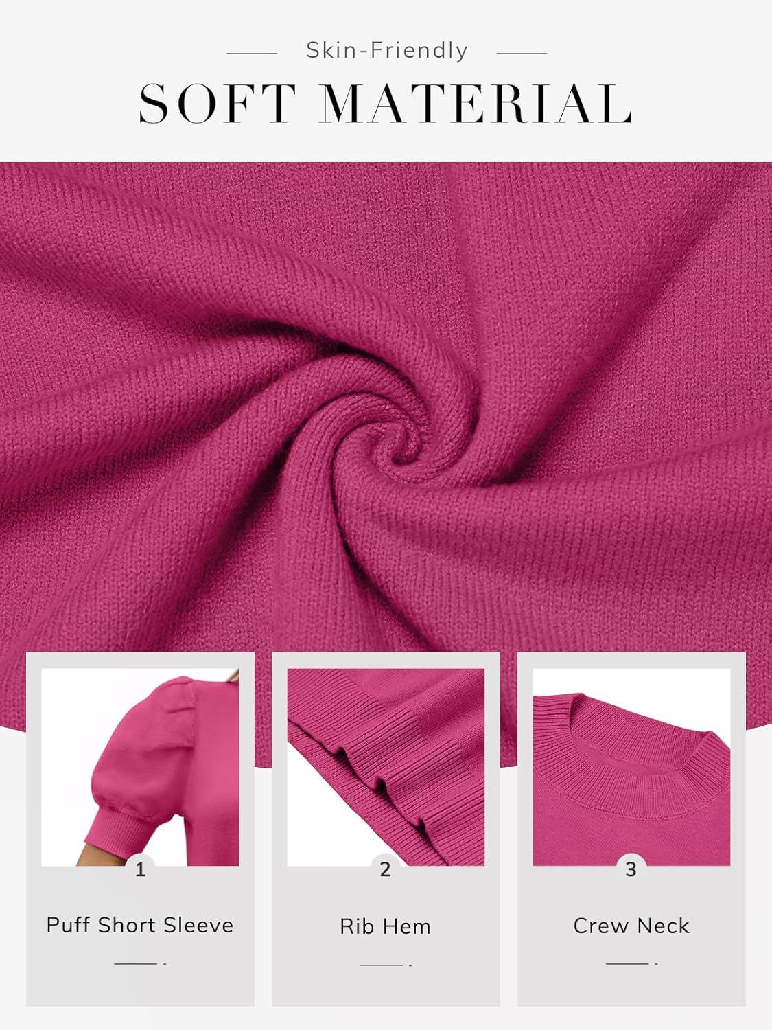 ATHMILE Women’s Puff Short Sleeve Sweater Tops 2025 Spring Summer Fall Trendy Casual T Shirts Blouses(A-light Pink)