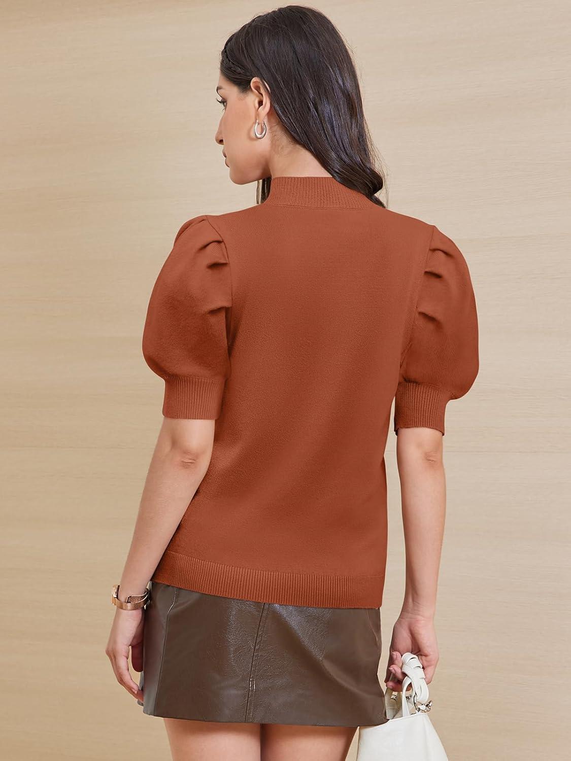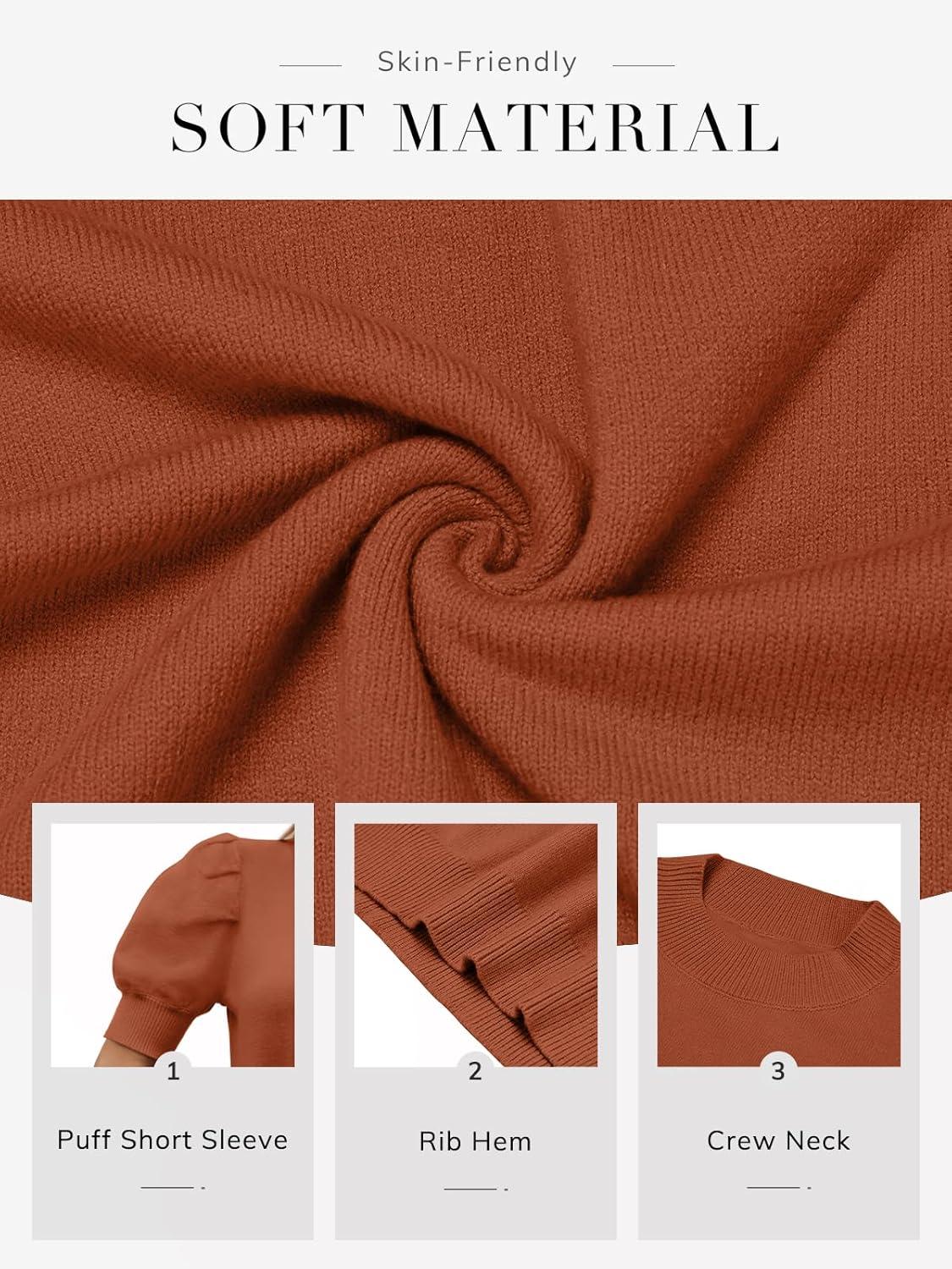ATHMILE Women’s Puff Short Sleeve Sweater Tops 2025 Spring Summer Fall Trendy Casual T Shirts Blouses(A-orange)