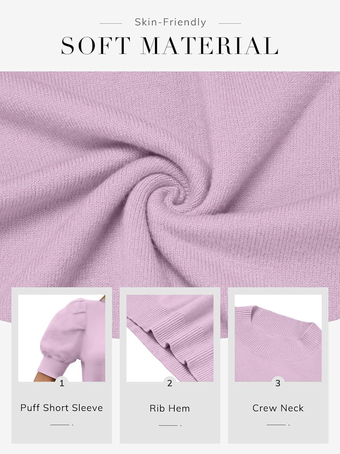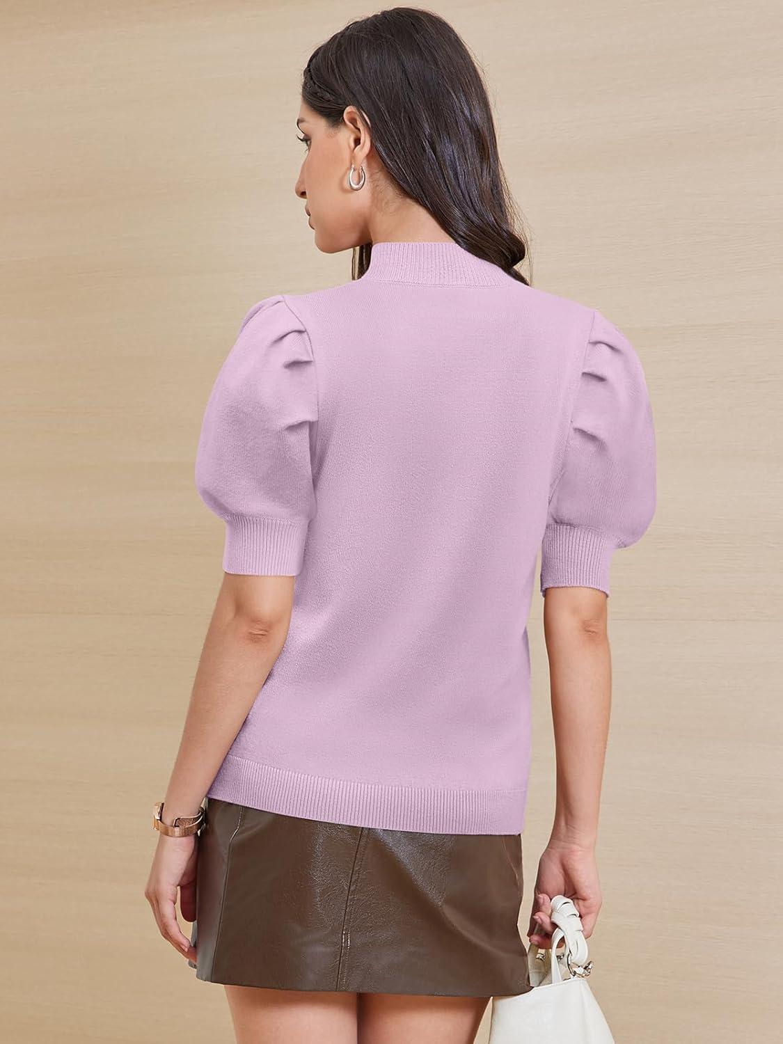 ATHMILE Women’s Puff Short Sleeve Sweater Tops 2025 Spring Summer Fall Trendy Casual T Shirts Blouses(A-purple)