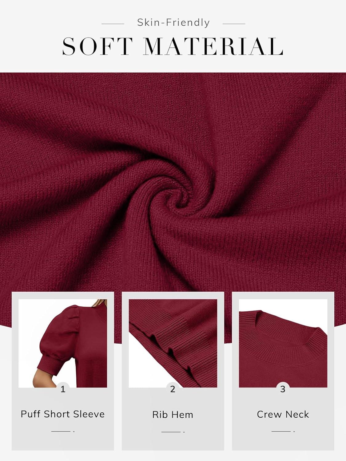ATHMILE Women’s Puff Short Sleeve Sweater Tops 2025 Spring Summer Fall Trendy Casual T Shirts Blouses(A-wine Red)