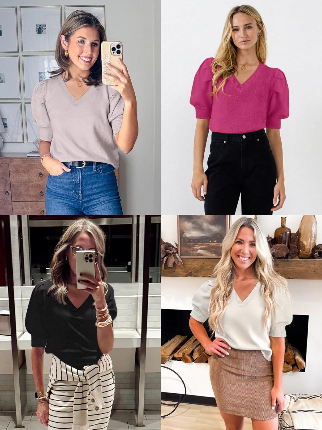Get a free gift with your purchase of ATHMILE Women’s Puff Short Sleeve Sweater Tops 2025 Spring Summer Fall Trendy Casual T Shirts Blouses(B-dark Grey). Limited quantities available!