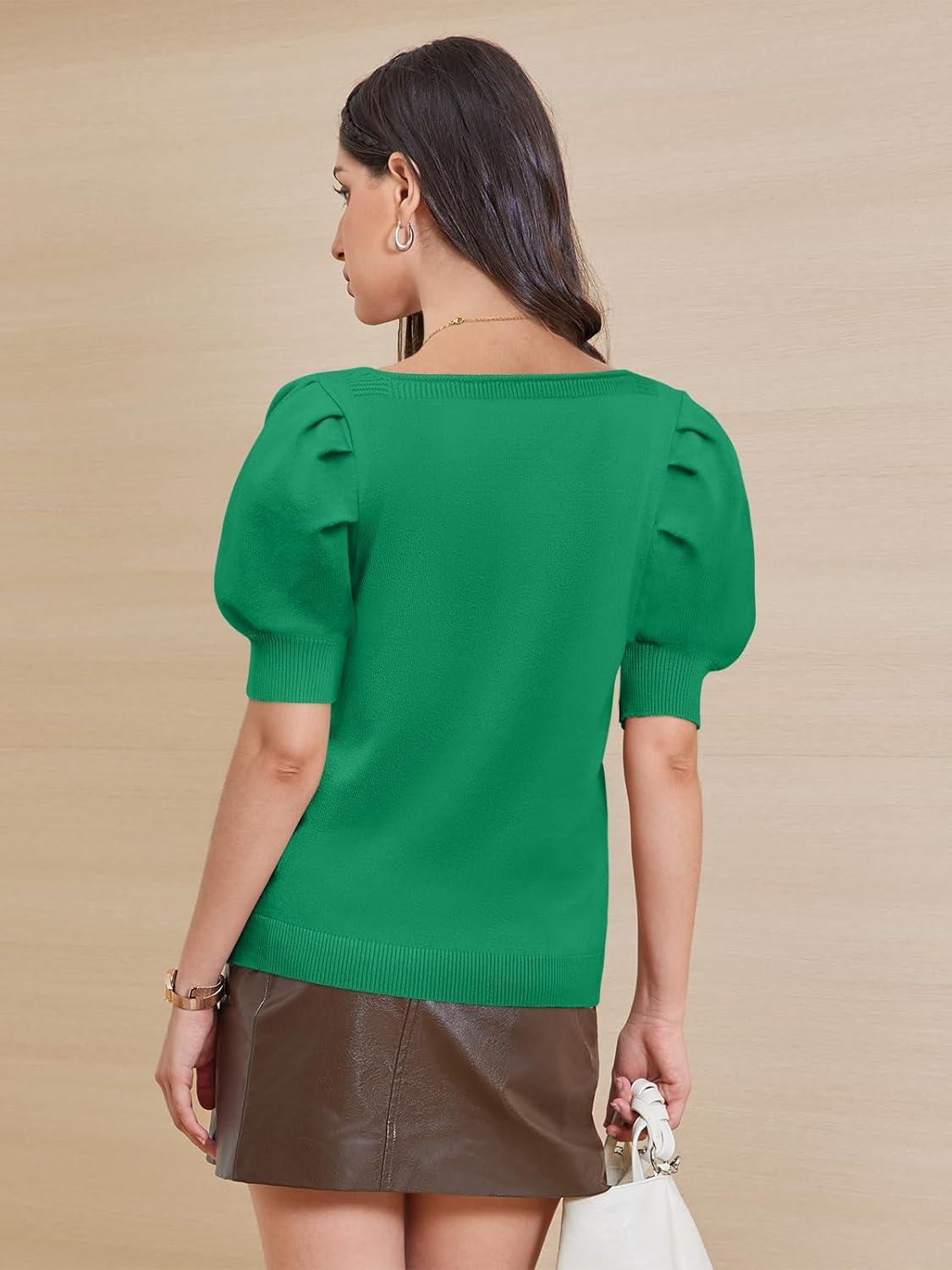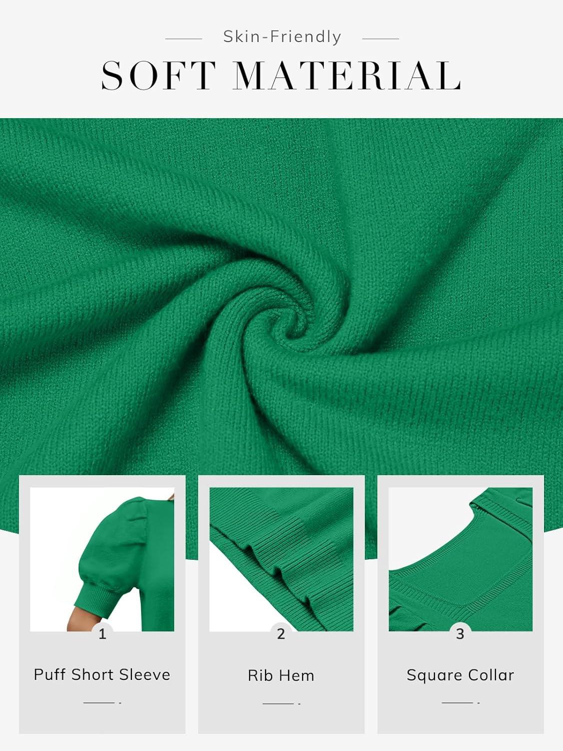 ATHMILE Women’s Puff Short Sleeve Sweater Tops 2025 Spring Summer Fall Trendy Casual T Shirts Blouses(C-green)