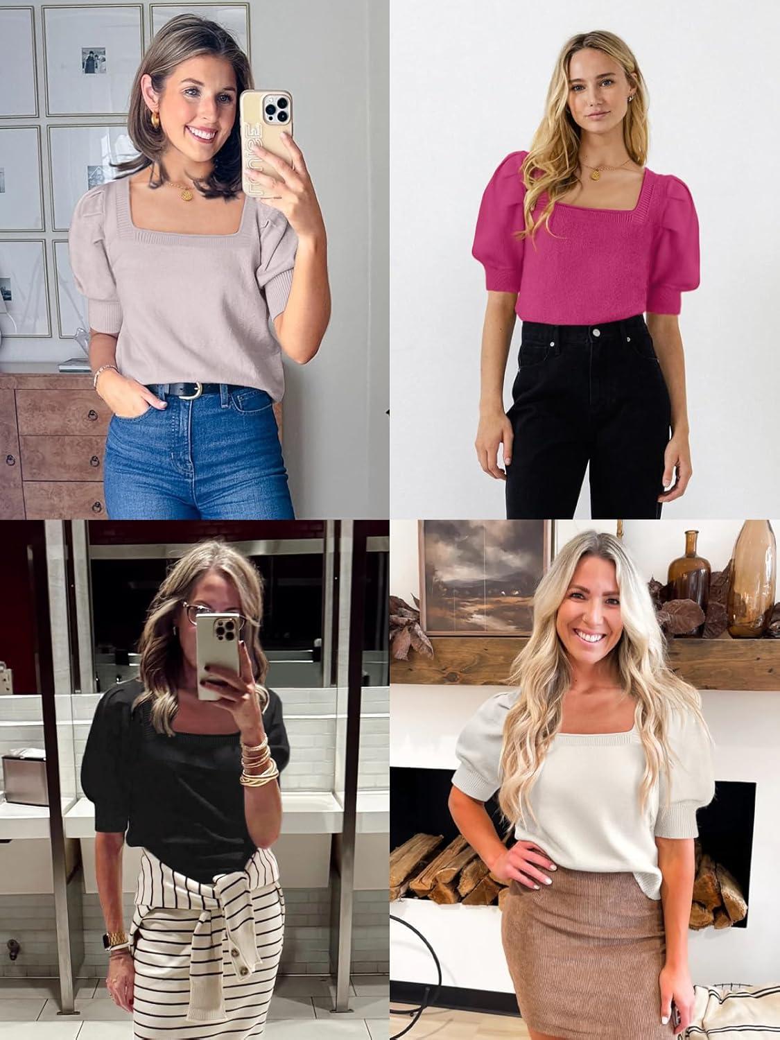 imageATHMILE Womens Puff Short Sleeve Sweater Tops 2025 Spring Summer Fall Trendy Casual T Shirts BlousesCwhite