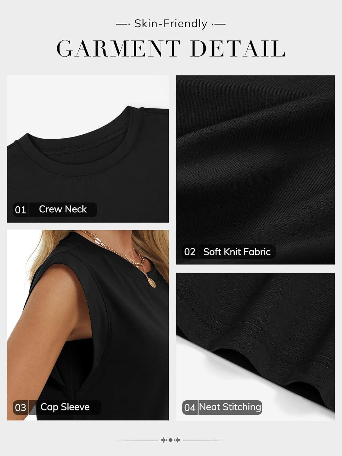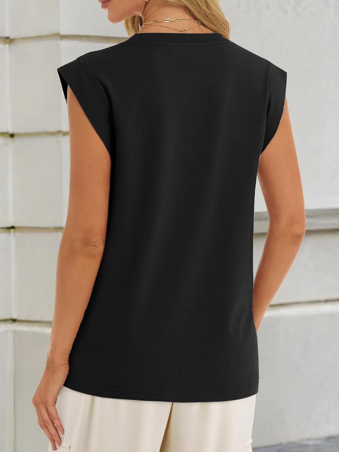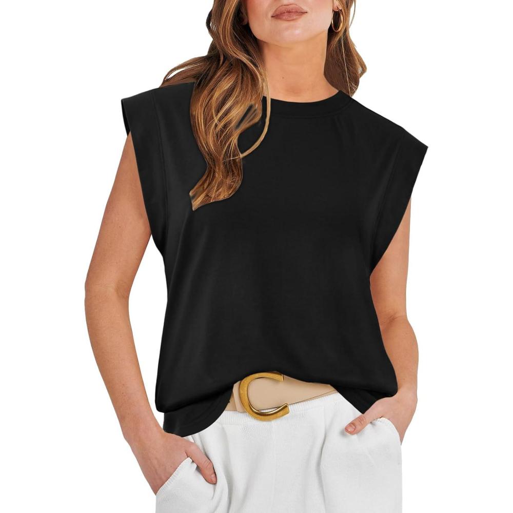 ATHMILE Women’s Sleeveless Summer Tank Tops Casual Trendy T Shirts Basic Trendy Cap Sleeve Oversized Tee(Black)
