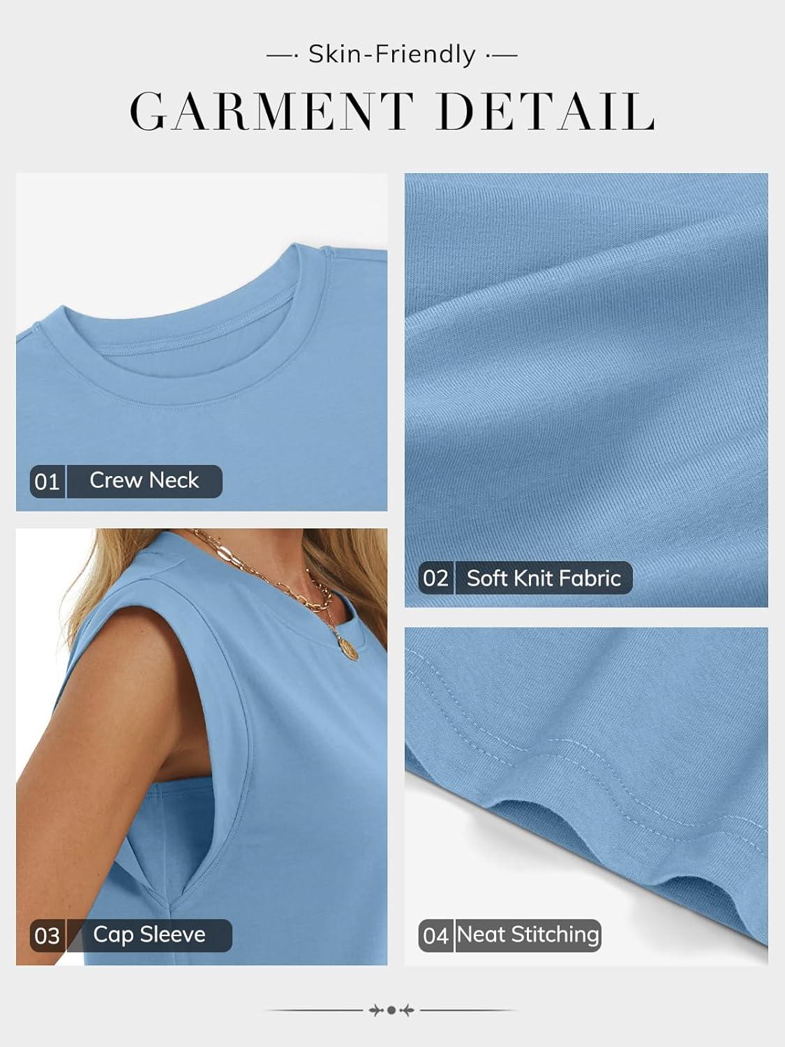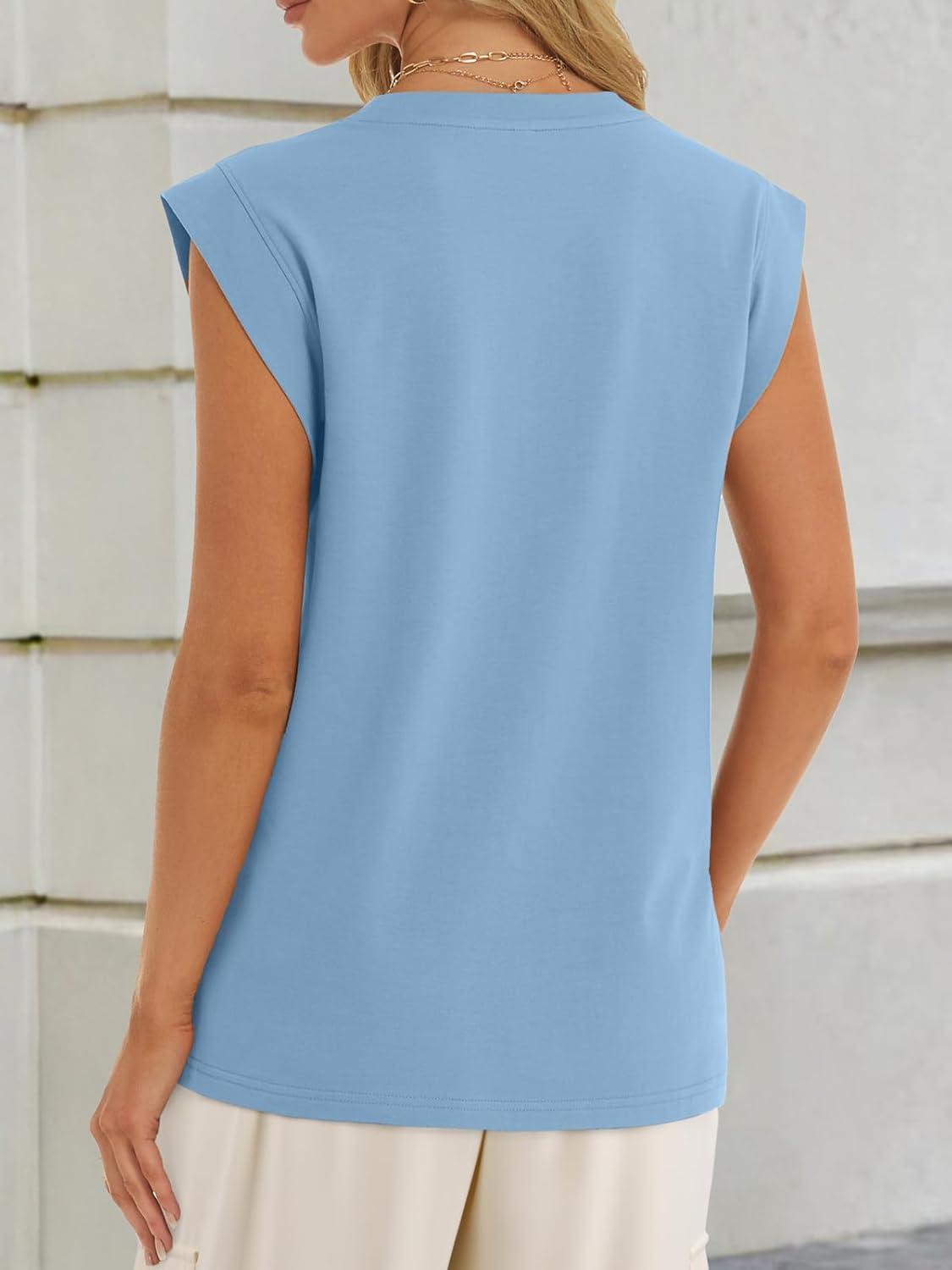 ATHMILE Women’s Sleeveless Summer Tank Tops Casual Trendy T Shirts Basic Trendy Cap Sleeve Oversized Tee(Blue)