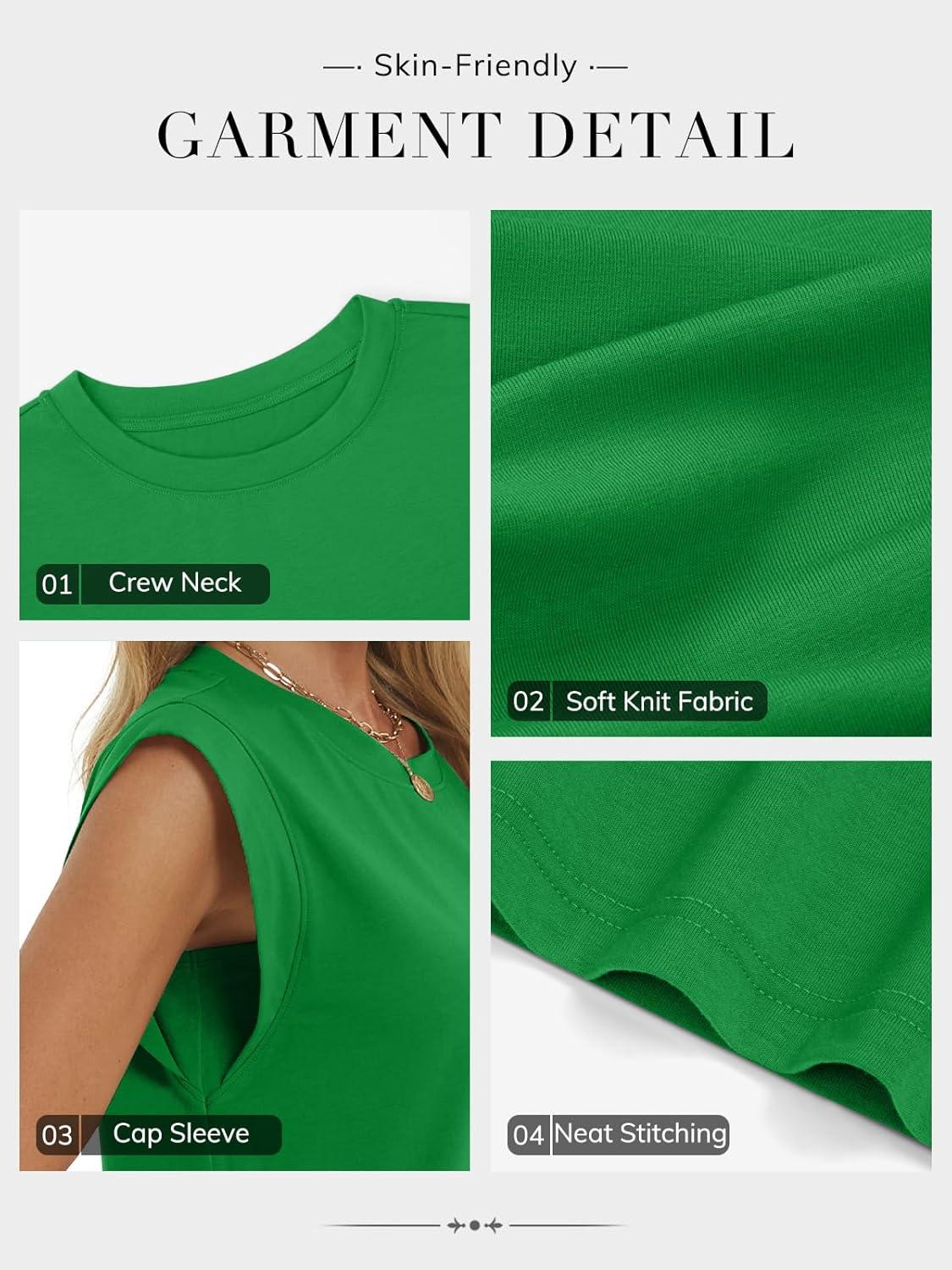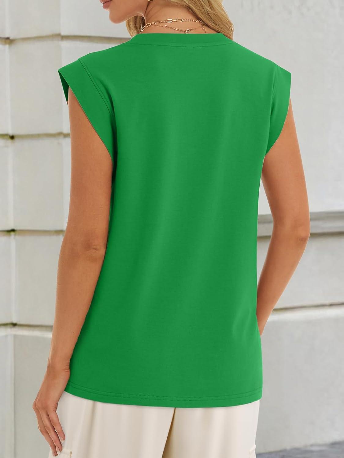 ATHMILE Women’s Sleeveless Summer Tank Tops Casual Trendy T Shirts Basic Trendy Cap Sleeve Oversized Tee(Green)