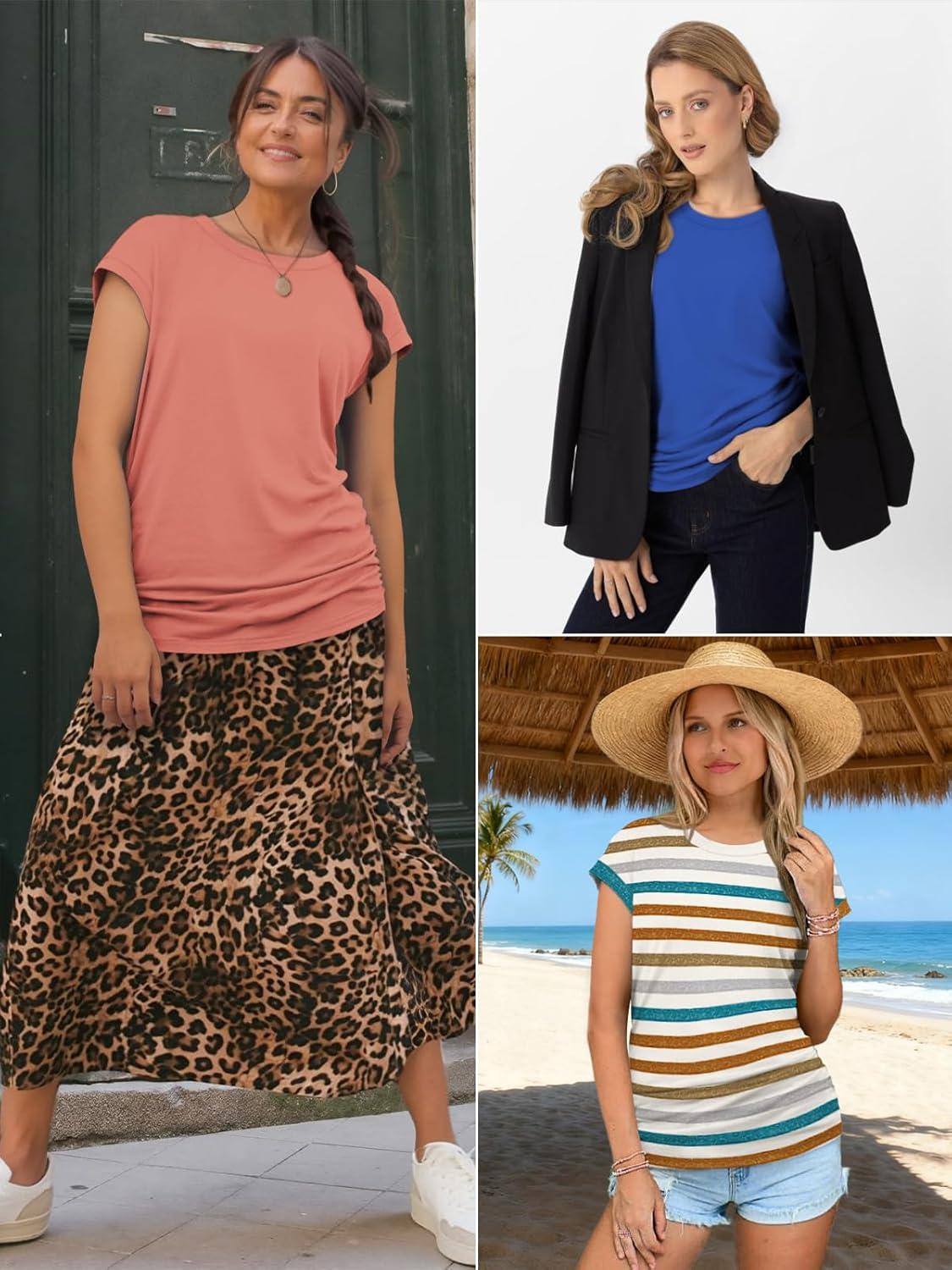 ATHMILE Womens Summer Tops Cap Sleeve Ruched Tshirts Business Casual Crewneck Trendy Outfits Basic Fashion Dressy Clothes