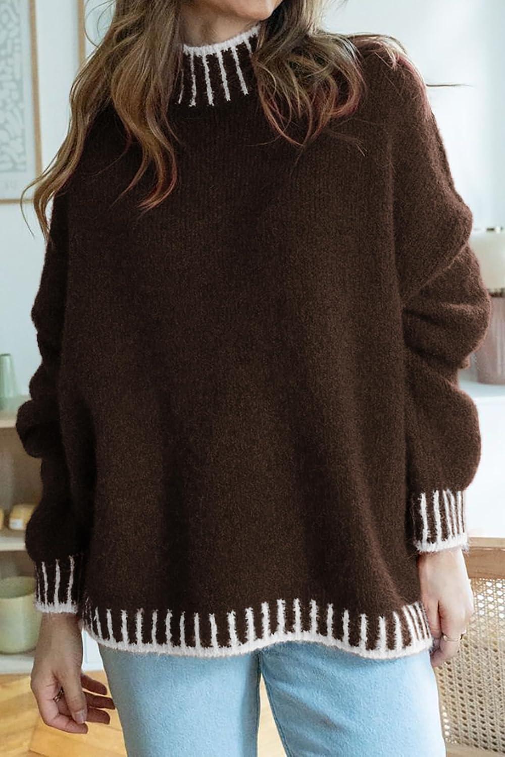 ATHMILE Womens Sweaters Fall Oversized Pullover Long Sleeve Mock Neck Chunky Knit Jumper Tops Winter Fashion Clothing 2025(Brown)
