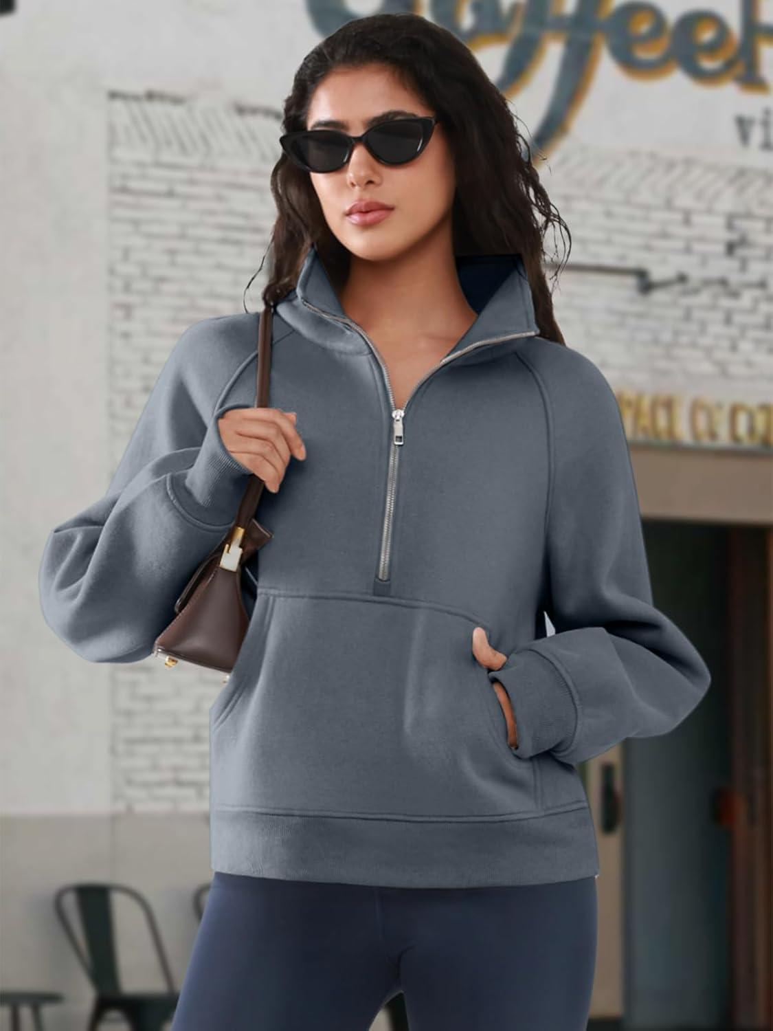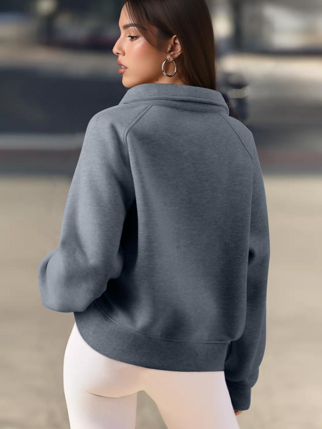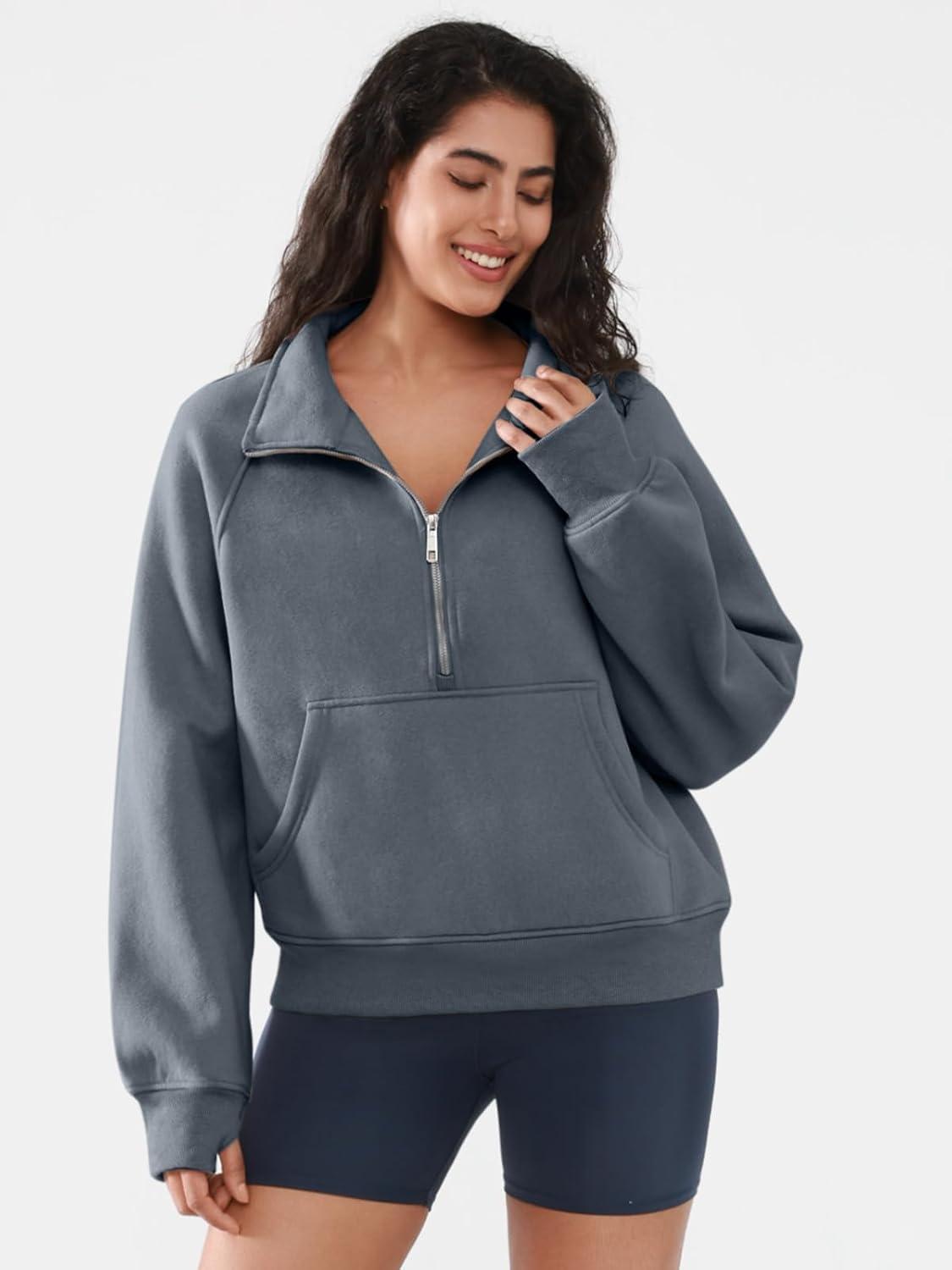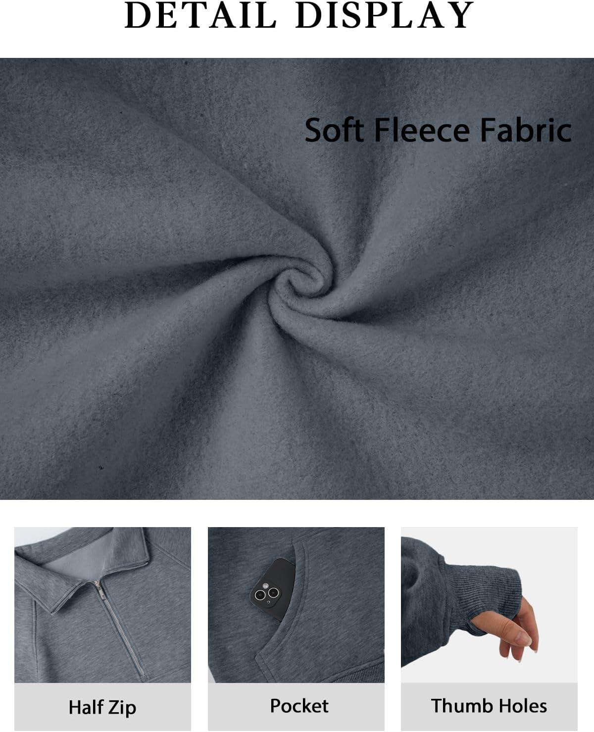 ATHMILE Womens Sweatshirts Half Zip Cropped Pullover Fleece Quarter Zipper Hoodies 2025 Fall Fashion Outfits Clothes(Greyblue)