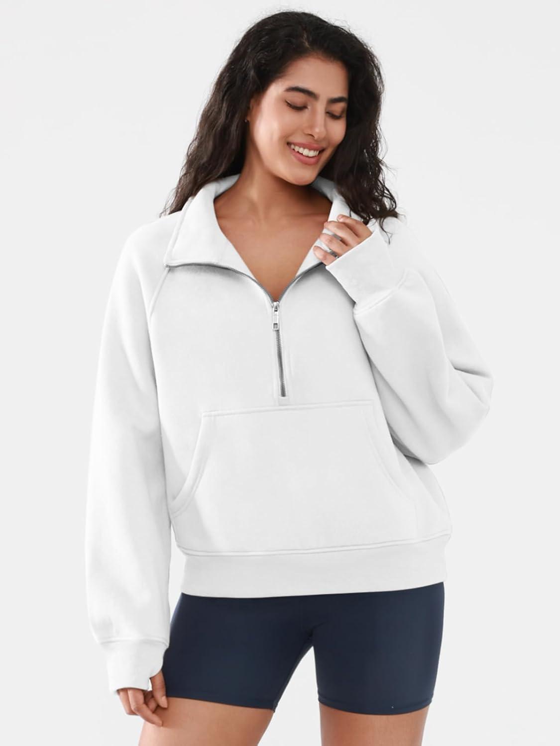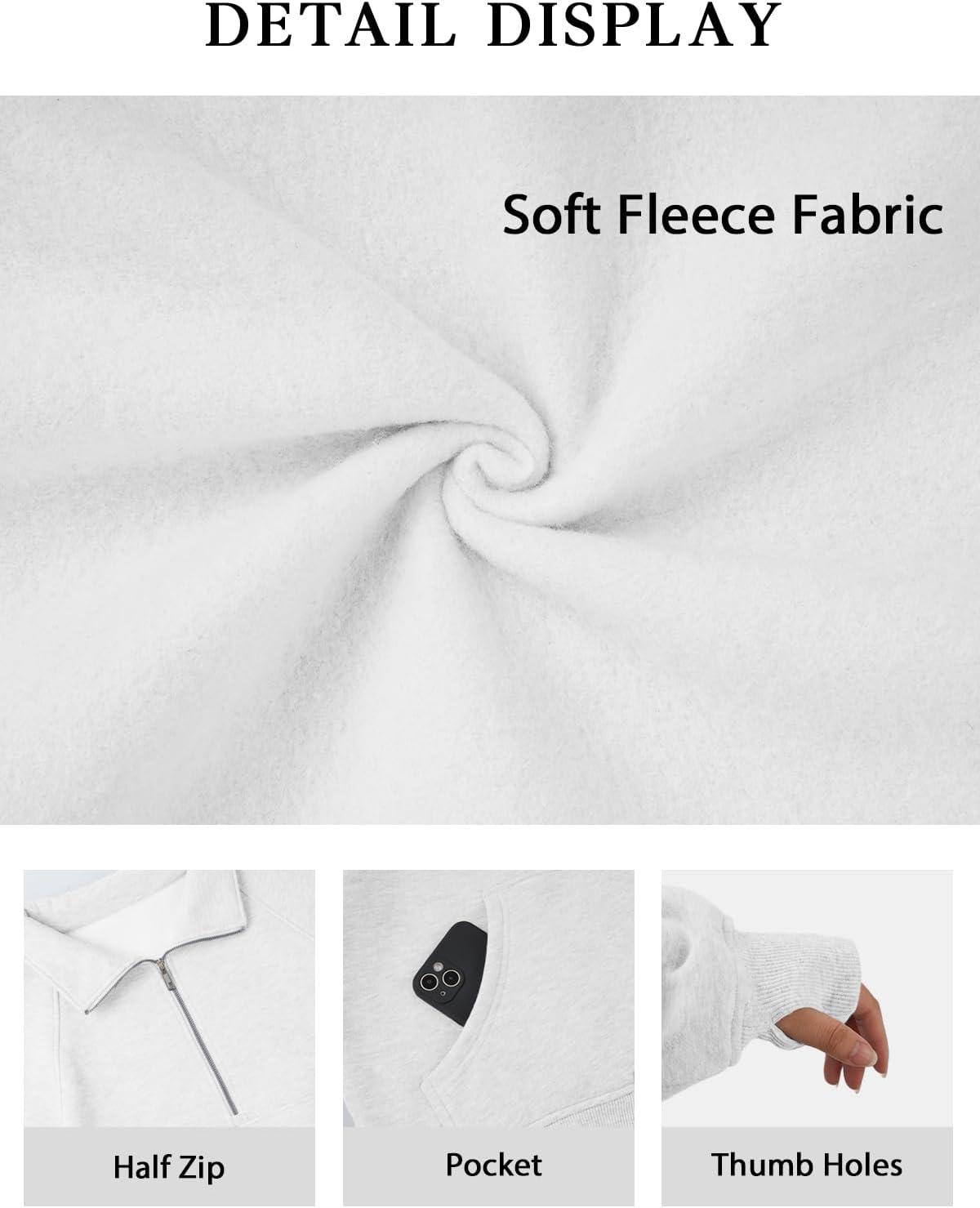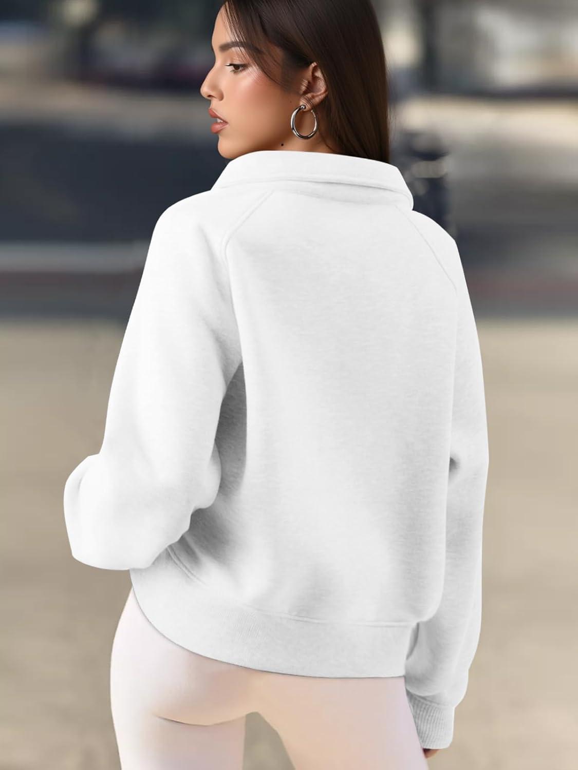 ATHMILE Womens Sweatshirts Half Zip Cropped Pullover Fleece Quarter Zipper Hoodies 2025 Fall Fashion Outfits Clothes(White)