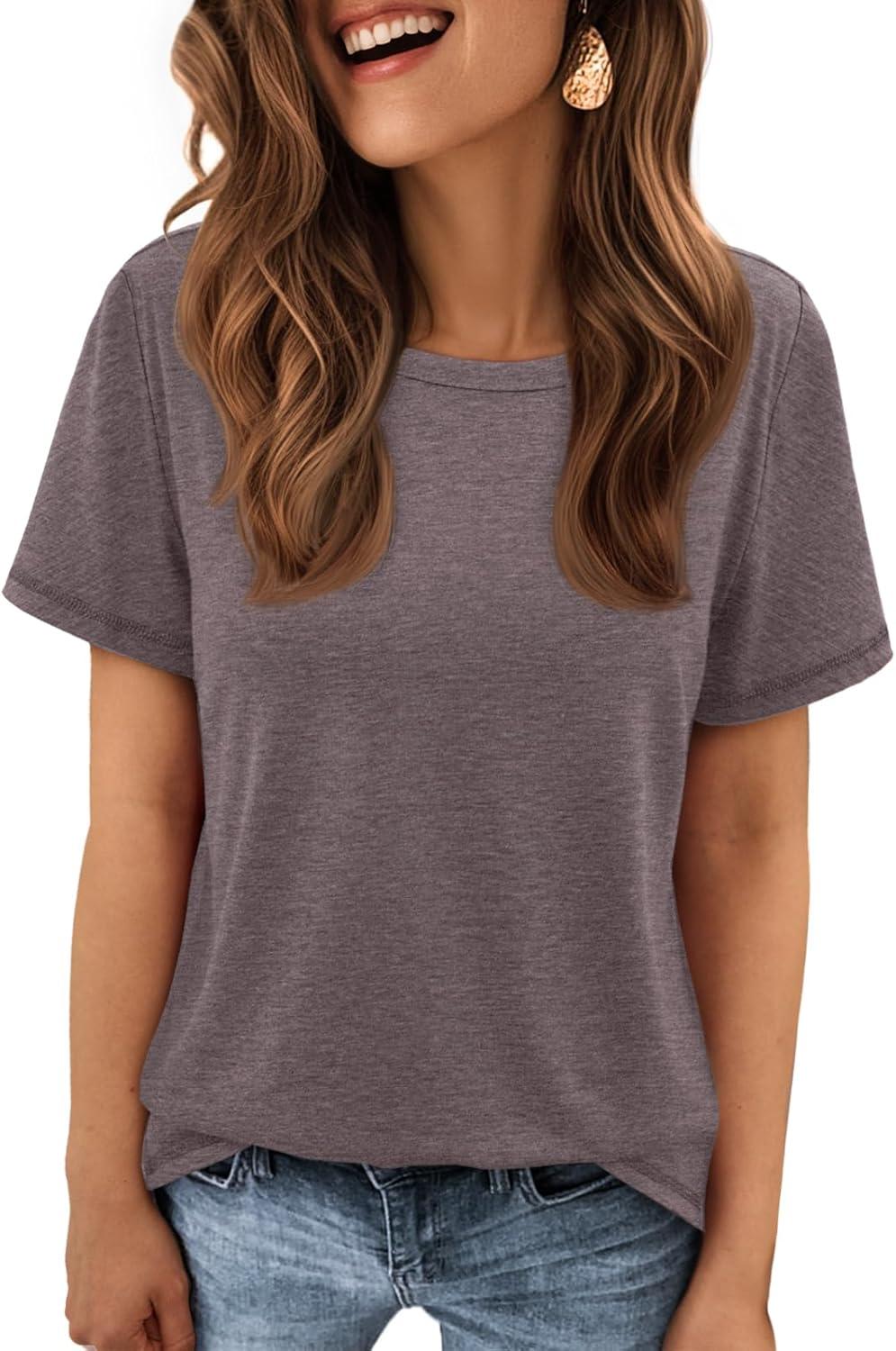 ATHMILE Womens T Shirt Summer Tops Short Sleeve Fashion School Teachers Clothes 2025 Spring Beach Vacation Trendy(Grey Purple)