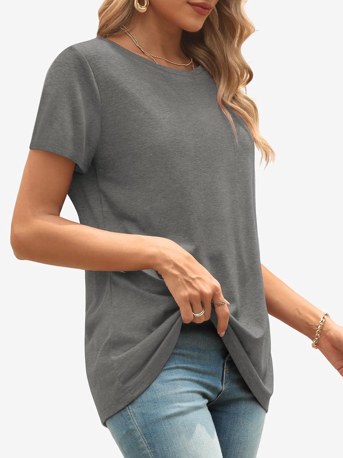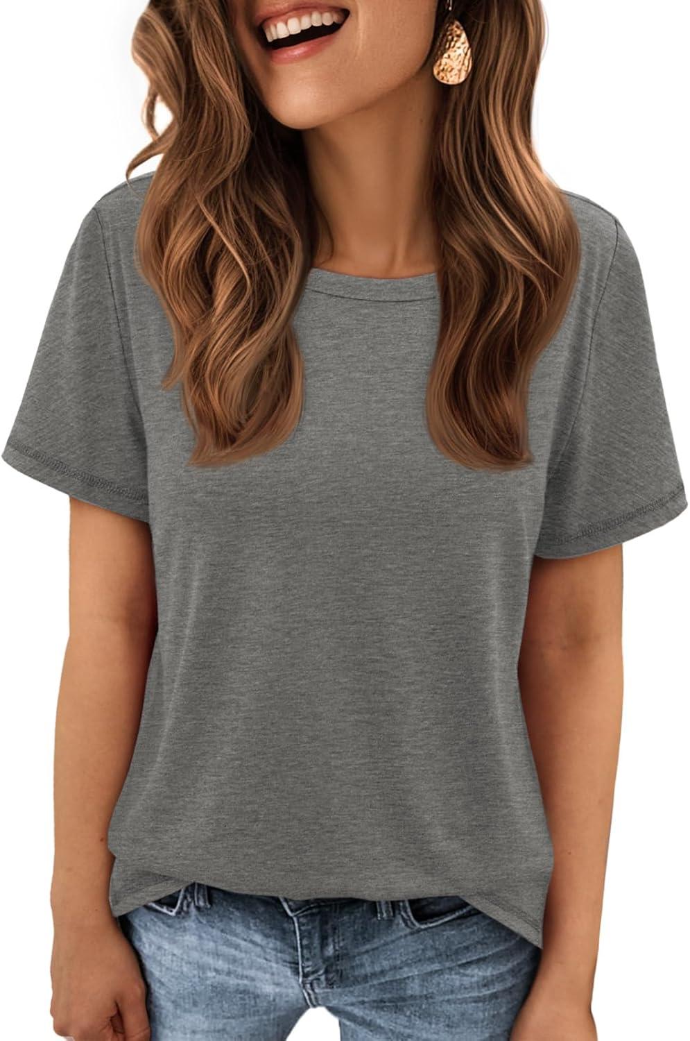 ATHMILE Womens T Shirt Summer Tops Short Sleeve Fashion School Teachers Clothes 2025 Spring Beach Vacation Trendy(Grey)
