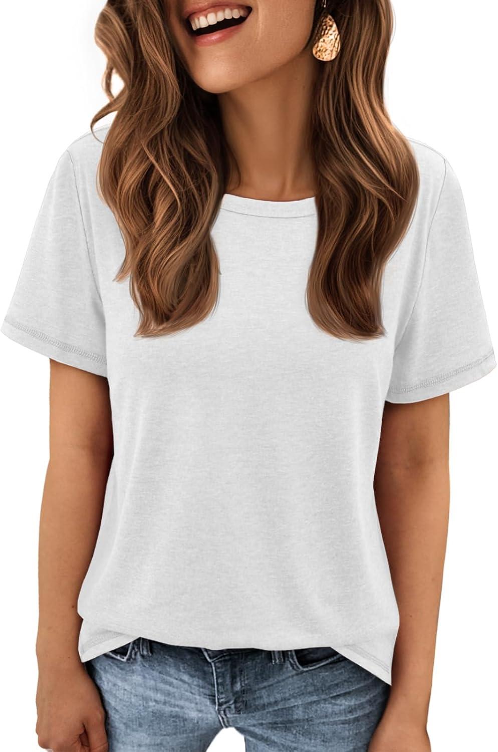 ATHMILE Womens T Shirt Summer Tops Short Sleeve Fashion School Teachers Clothes 2025 Spring Beach Vacation Trendy(White)