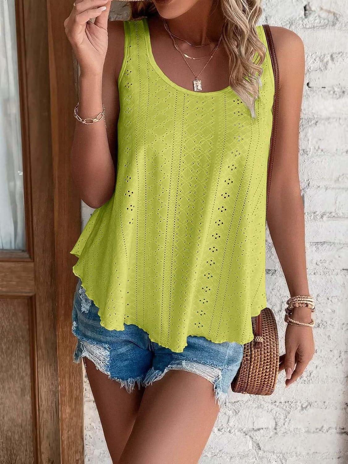 ATHMILE Womens Tank Tops Sleeveless Eyelet Embroidery Scoop Neck Loose Fit Casual Summer Flowy Beach(Lime Green)
