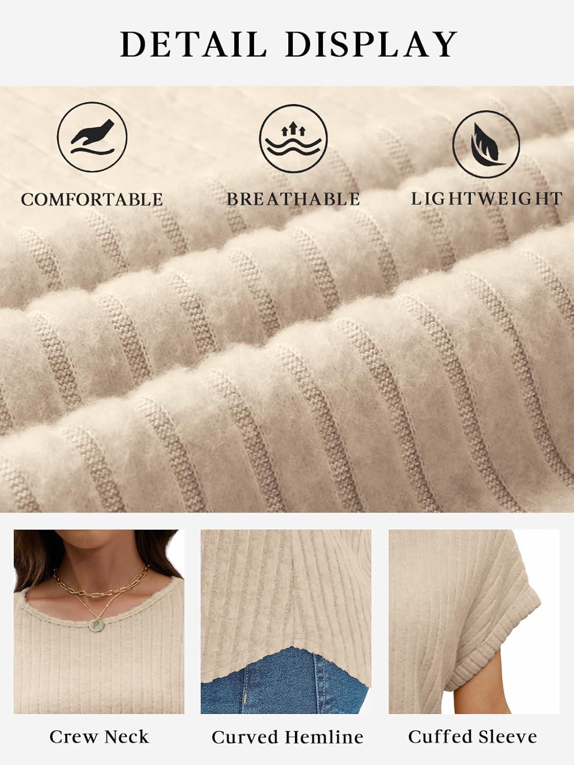 ATHMILE Womens Tops Summer Sweaters Regular Fit Short Sleeve Shirts Fashion Dressy Casual Business Tunic Blouses 2025(Apricot)