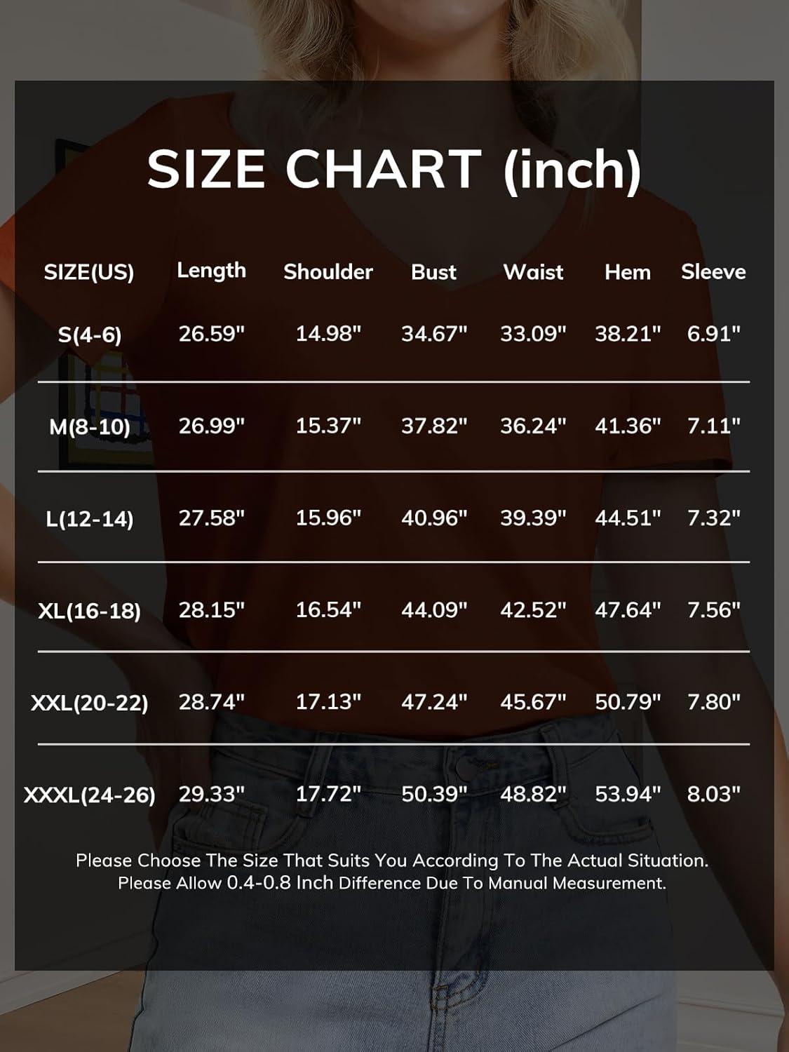 ATHMILE Womens V Neck Short Sleeve Summer T Shirts Curved Hem Plain Top Beach(Black)