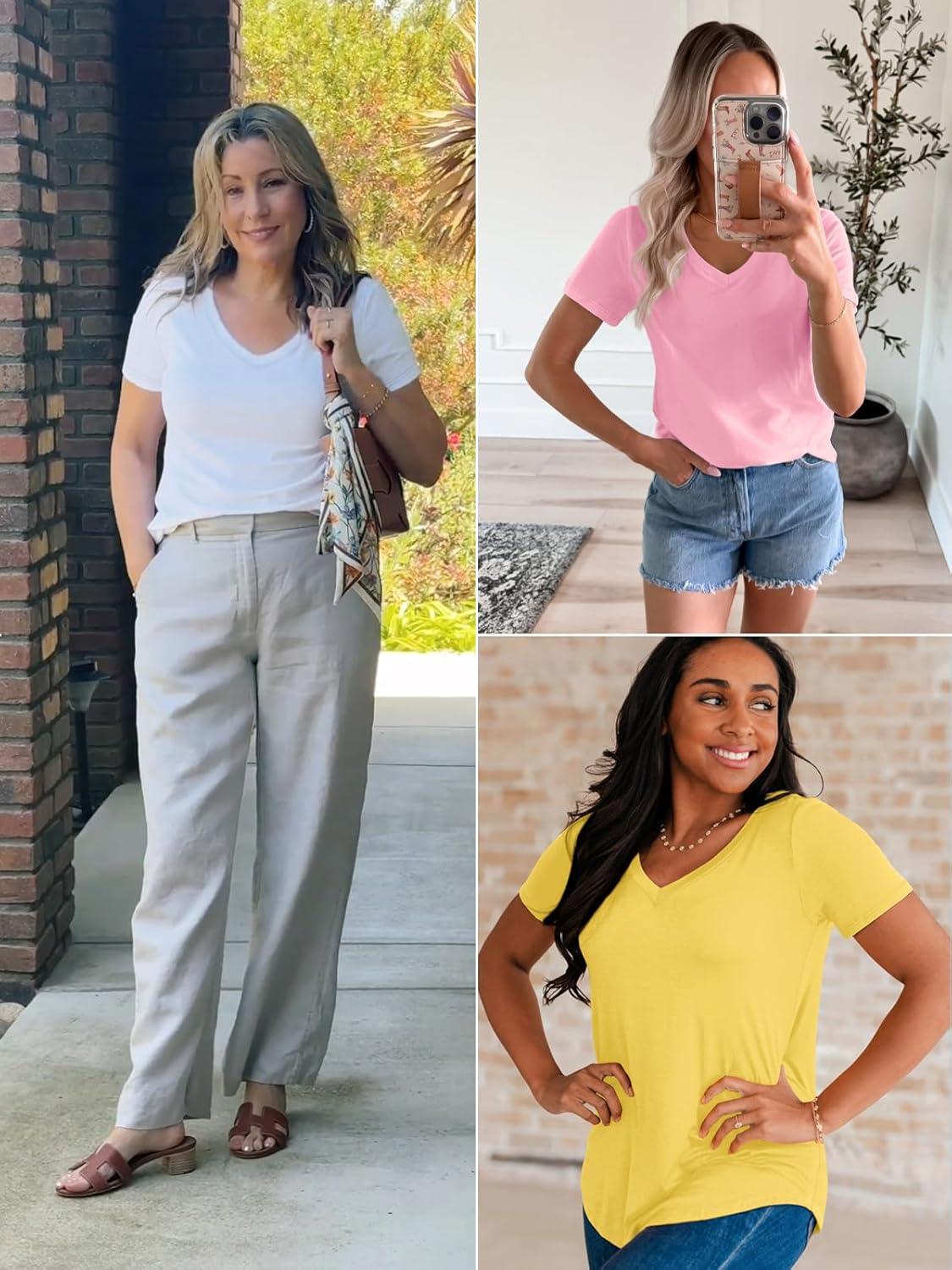 imageATHMILE Womens V Neck Short Sleeve Summer T Shirts Curved Hem Plain Top BeachWinered