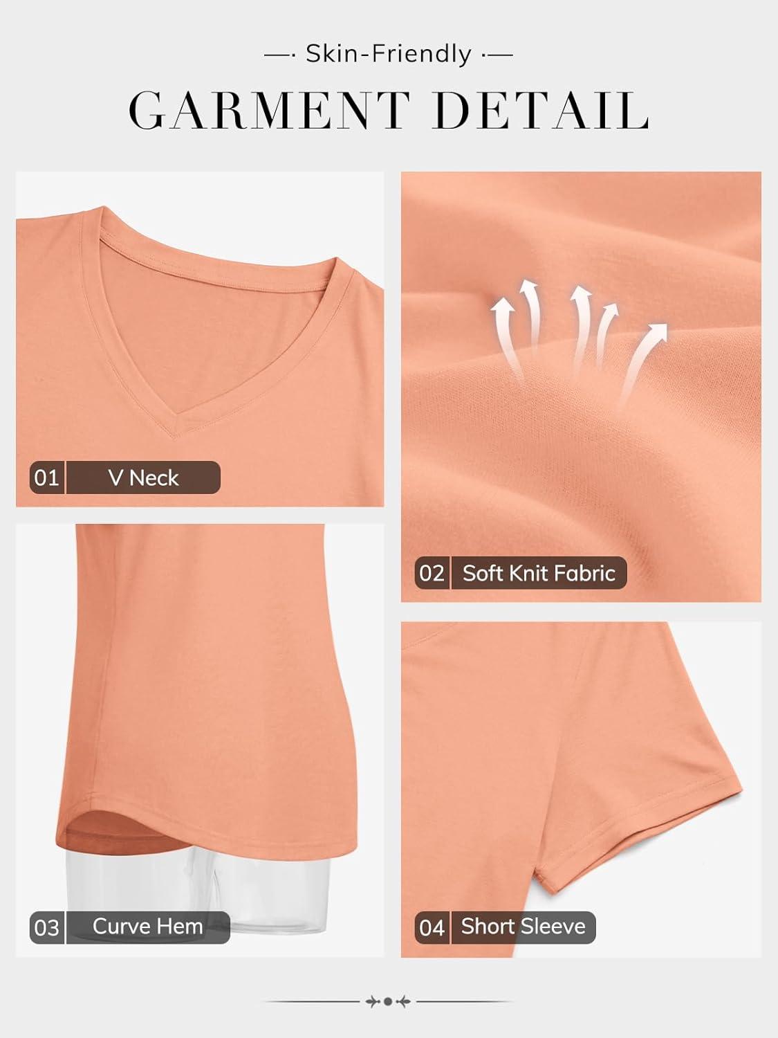 ATHMILE Womens V Neck Short Sleeve Summer T Shirts Curved Hem Plain Top Beach(Lightpink)