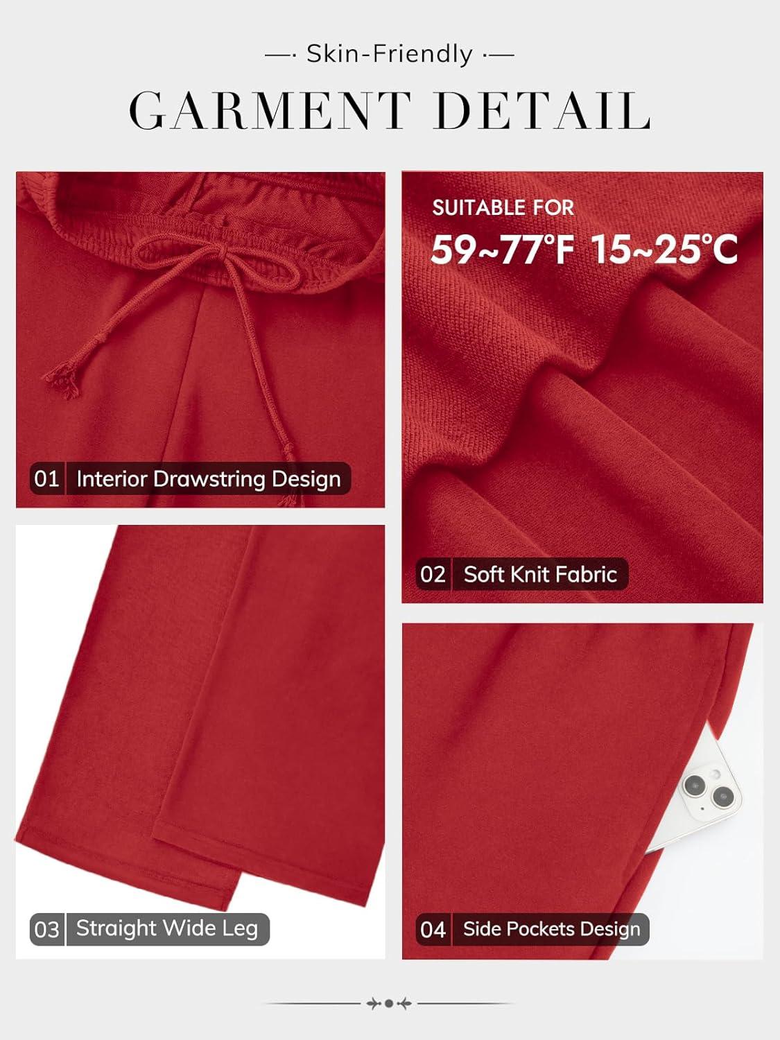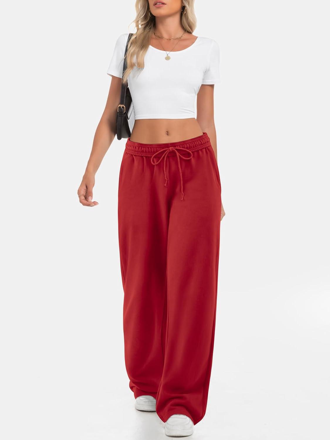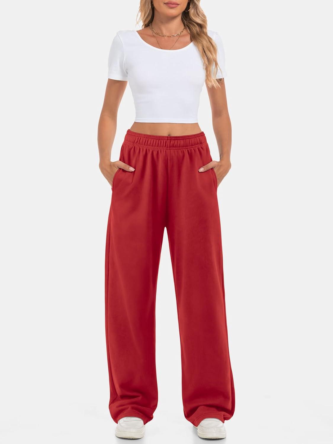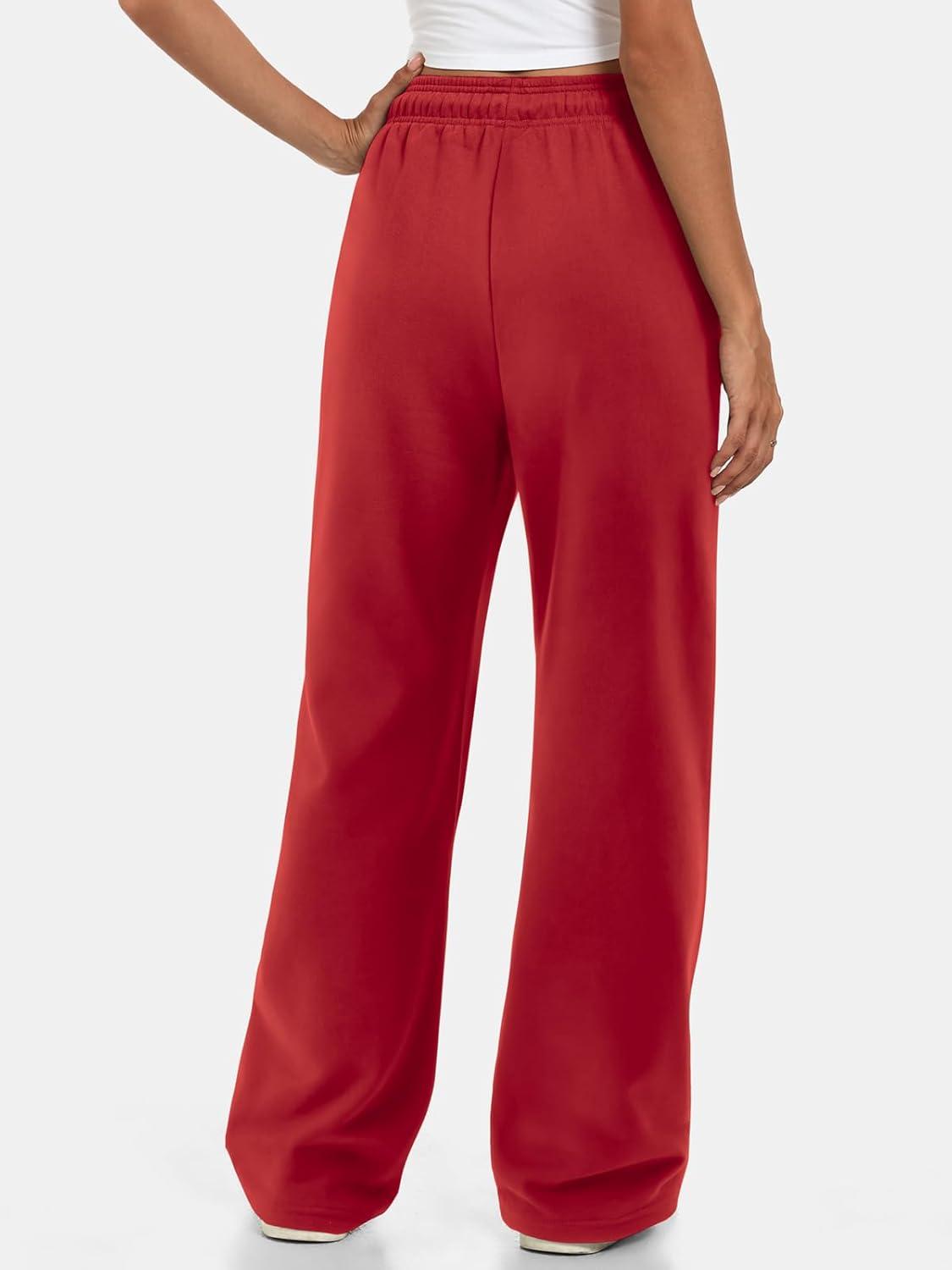 ATHMILE Women’s Wide Leg Sweatpants High Waisted Baggy Interior Drawstring Joggers Straight Leg Sweat Pants with Pockets(Red)